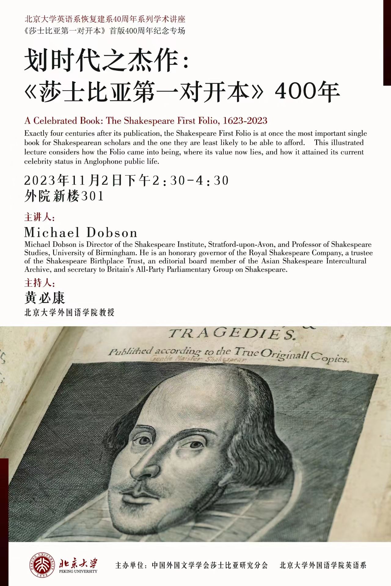 bat365登录平台入口英语系恢复建系40周年系列学术讲座:划时代之杰作:《莎士比亚第一对开本》400年 讲座预告