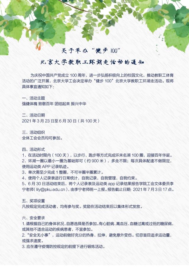 关于举办“健步100”bat365登录平台入口教职工环湖走活动的通知