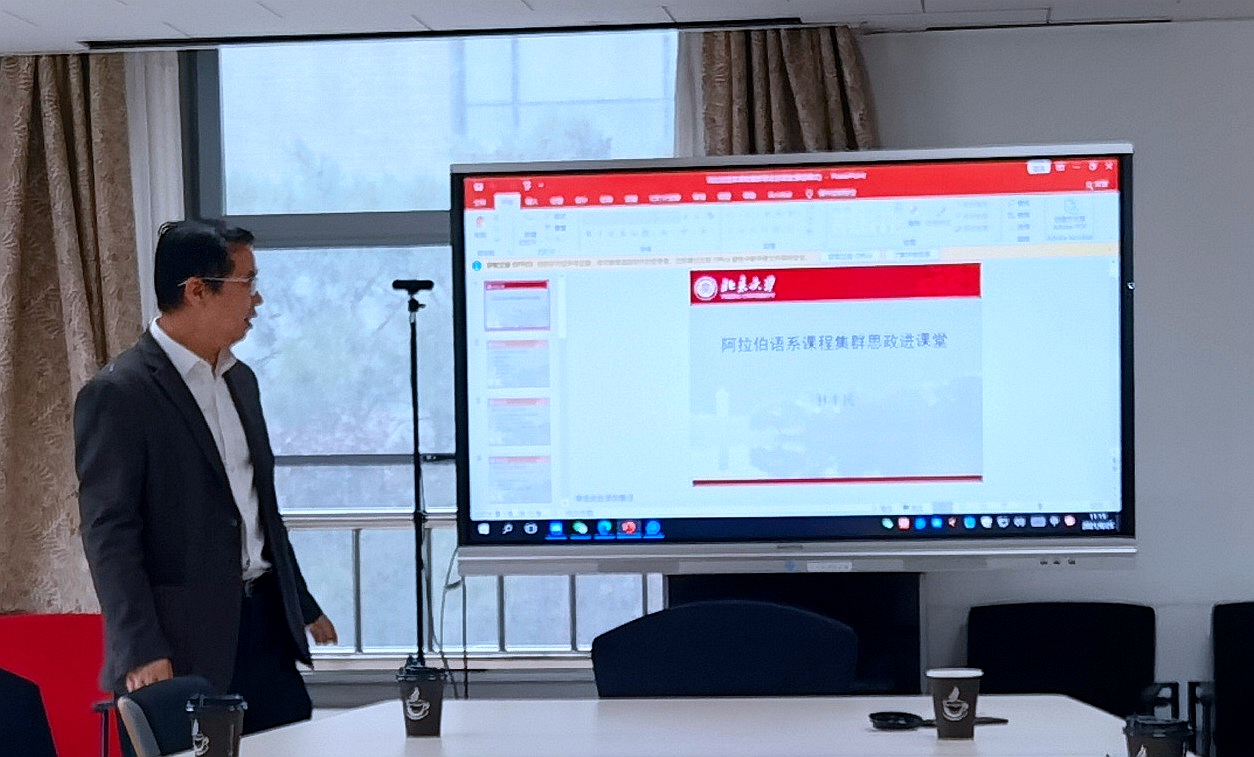 林丰民教授作为东方文学课程的负责人,总结了过去两个学年“东方文学”课程评估和学生反馈的情况,肯定了课程取得的良好教学成果;重点介绍了bat365登录平台入口课程思政建设工作的背景和进展,以及北大外院阿拉伯语系课程思政专业立项的情况,特别向与会老师分享了阿拉伯语系课程集群思政进课堂的做法、经验和成果:阿语系的各位教师选取“习近平谈治国理政”、中国传统文化、中国古代哲学、时政、外交、经济等材料,运用在基础语言、翻译、阿拉伯语书法艺术、报刊选读等多门课程的教学中,注重引导学生站在国家立场思考问题。他认为,阿语系学生在老师和专家的指导下,积极录制面向埃及、阿曼、卡塔尔、苏丹、阿联酋、沙特等阿拉伯国家的合作抗疫视频,其实就是阿拉伯语专业课程思政的过程和结果。他指出,课程思政建设要以“立德树人”为根本宗旨,鼓励与会老师结合传统与创新,在东方文学课程建设中体现思政因素。