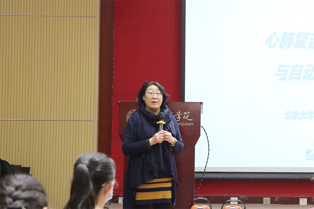 培训开始前,工会主席张冬梅老师介绍了此次培训的意义。在公共场所配备必要的急救设备,是国家建立健全突发事件卫生应急体系的需要,正在成为检验城市文明水平和基础设施是否完备的新标尺。学院工会一向高度重视安全问题,本学期购置了自动体外除颤仪(以下简称AED),放置于外院新楼一层大厅。心肺复苏术、AED操作方法都是普通人通过培训可以掌握的,开展急救培训,提高相关人员对急救术的掌握率,是争取黄金抢救时间的可行之法。本次特别邀请专业团队带来心肺复苏、AED使用的技能培训,希望大家高度重视、认真学习,增强公众急救意识,掌握急救技能,在紧急关头为学院师生提供切实的帮助。