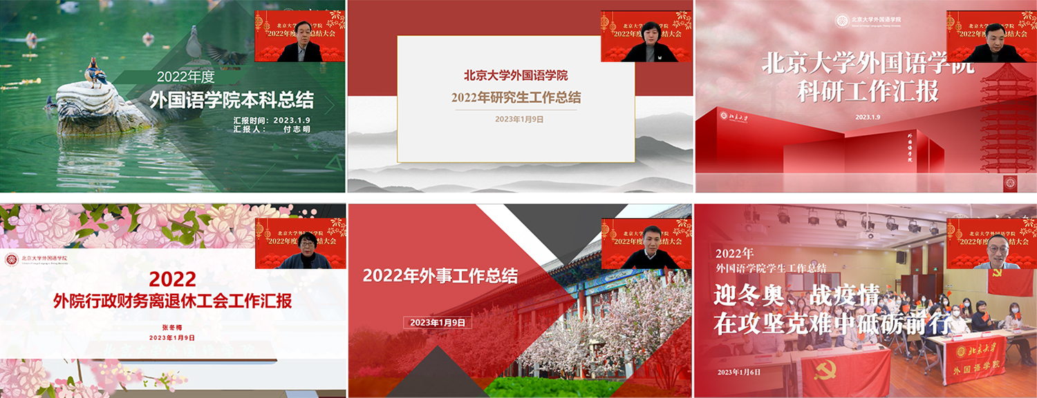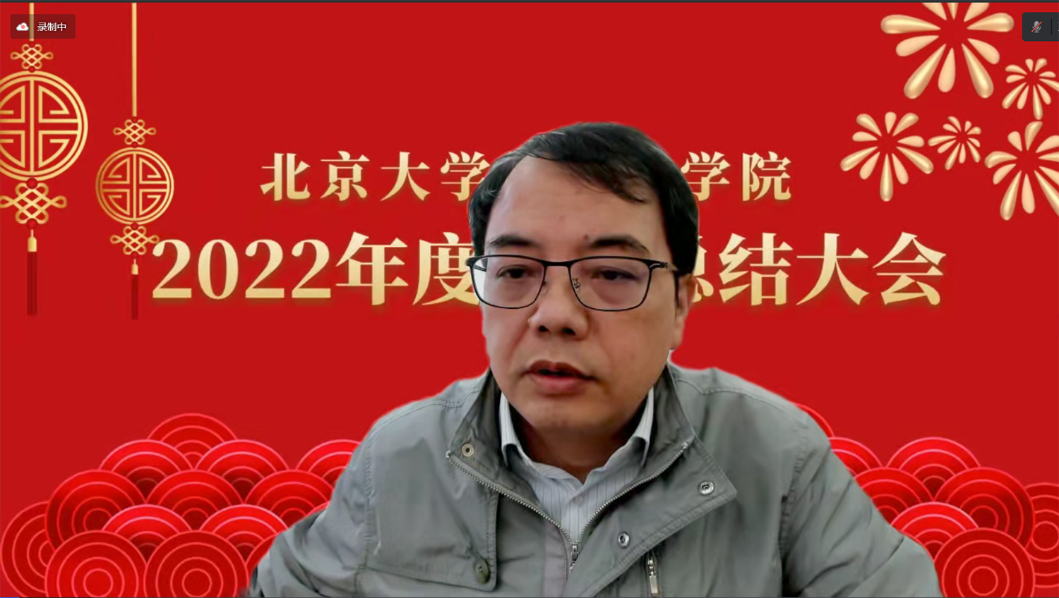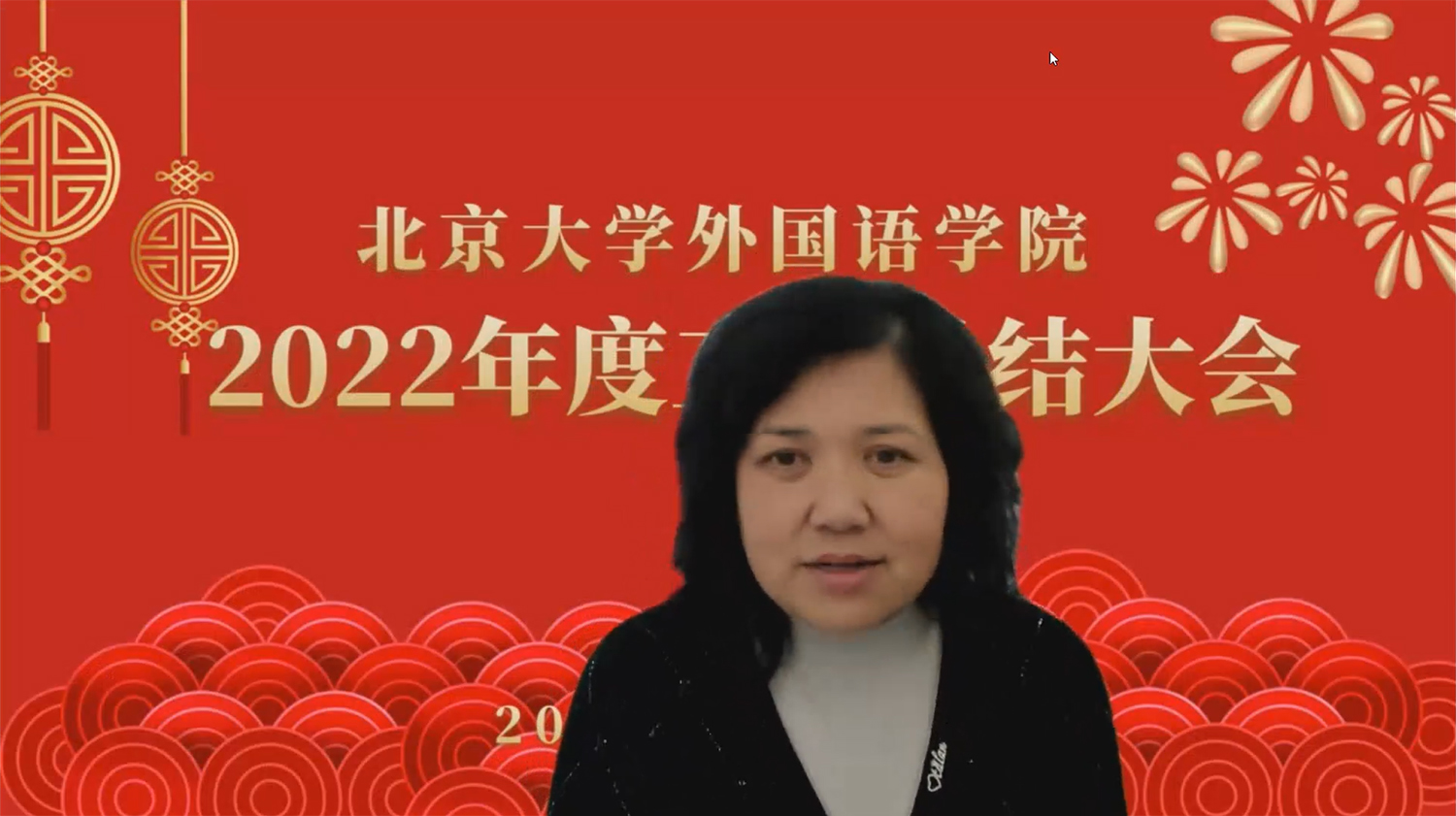 院长陈明对学院全年的工作进行了总结。2022年,学院师生团结一心、共克时艰,各项工作稳步推进,取得了优异的成绩。学院紧抓放权改革机遇,编制《外国语言文学学科放权改革方案》,明确了北大外语学科的阶段性建设目标。学院坚持党对人才工作的全面领导,深化教师人事制度改革,制定《bat365登录平台入口人才发展战略》,系统开展引才、育才、选才工作,多措并举、强化引领。打造“院长茶座”“青年教师座谈会”“学科建设沙龙”等品牌活动,促进青年教师职业生涯发展。在教育部第五轮一级学科评估中,北大外语学科保持领先,翻译专业学位在全国专业学位水平评估中表现优异,彰显了学院的引领地位。申丹教授荣聘中国人力资源保障部批准聘任的国家文科一级教授,段晴教授领衔的“东方语言文化教师团队”入选教育部第二批全国高校黄大年式教师团队,赵振江教授荣膺中国翻译界最高荣誉“翻译文化终身成就奖”……无数荣誉的取得无不体现着学院教师深厚的积累与持续的爆发力,以及学院风清气正、勠力同心的学术生态。他希望新的一年,全院教师能够精诚合作、团结一心、各尽其能,共同谱写北大外语学科发展的新篇章。
