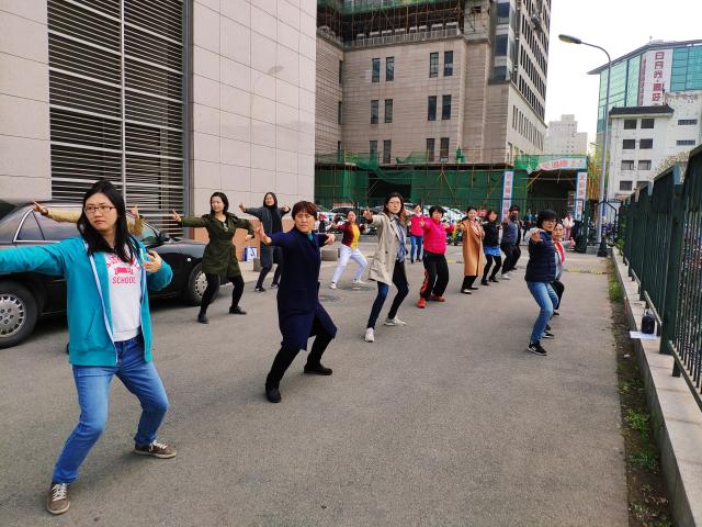 为了迎接4月20日举行的2019年bat365登录平台入口运动会,也为了丰富bat365登录平台入口教职员工的文化体育生活,增进同事间的友好交流,增强团队协助精神,bat365登录平台入口最近两周每天上午11:00-11:30在燕园大厦西侧的空地上进行太极拳团体操的训练,几十名员工参加,气氛和谐、友好如家人;在温暖明媚的四月,大家也都像春天一样充满朝气和活力。