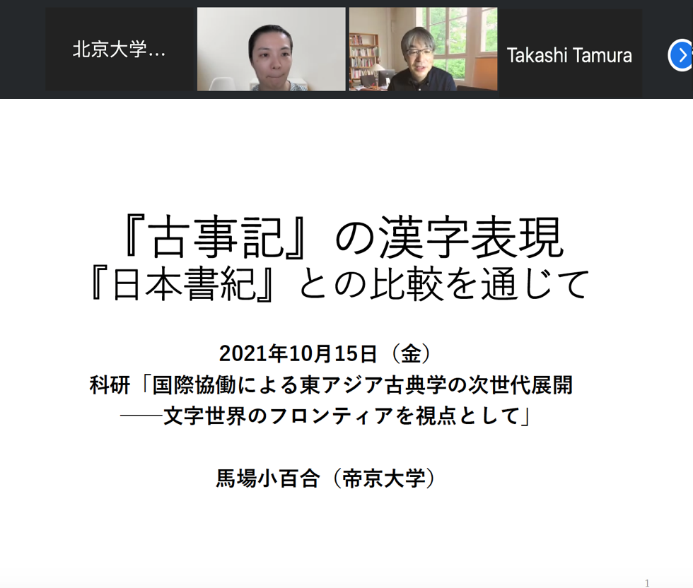 2021年10月15日14时,“国际合作下的东亚古典学新生代发展”bat365登录平台入口系列讲座第一讲通过ZOOM如期举行。本次讲座由bat365登录平台入口日本语言文化系、bat365登录平台入口东方文学研究中心和东京大学大学院人文社会系研究科(日本学术振兴会基盘研究A“国际合作下的东亚古典学新生代发展”)联合举办,东京大学斋藤希史教授与bat365登录平台入口丁莉教授共同主持。bat365登录平台入口潘钧教授、解璞助理教授、东京大学德盛诚教授、田村隆副教授、京都大学道坂昭广教授、帝京大学马场小百合老师等来自bat365登录平台入口、中国人民大学、东京大学等海内外高校的近二十名师生相聚云端,参加了本次讲座。