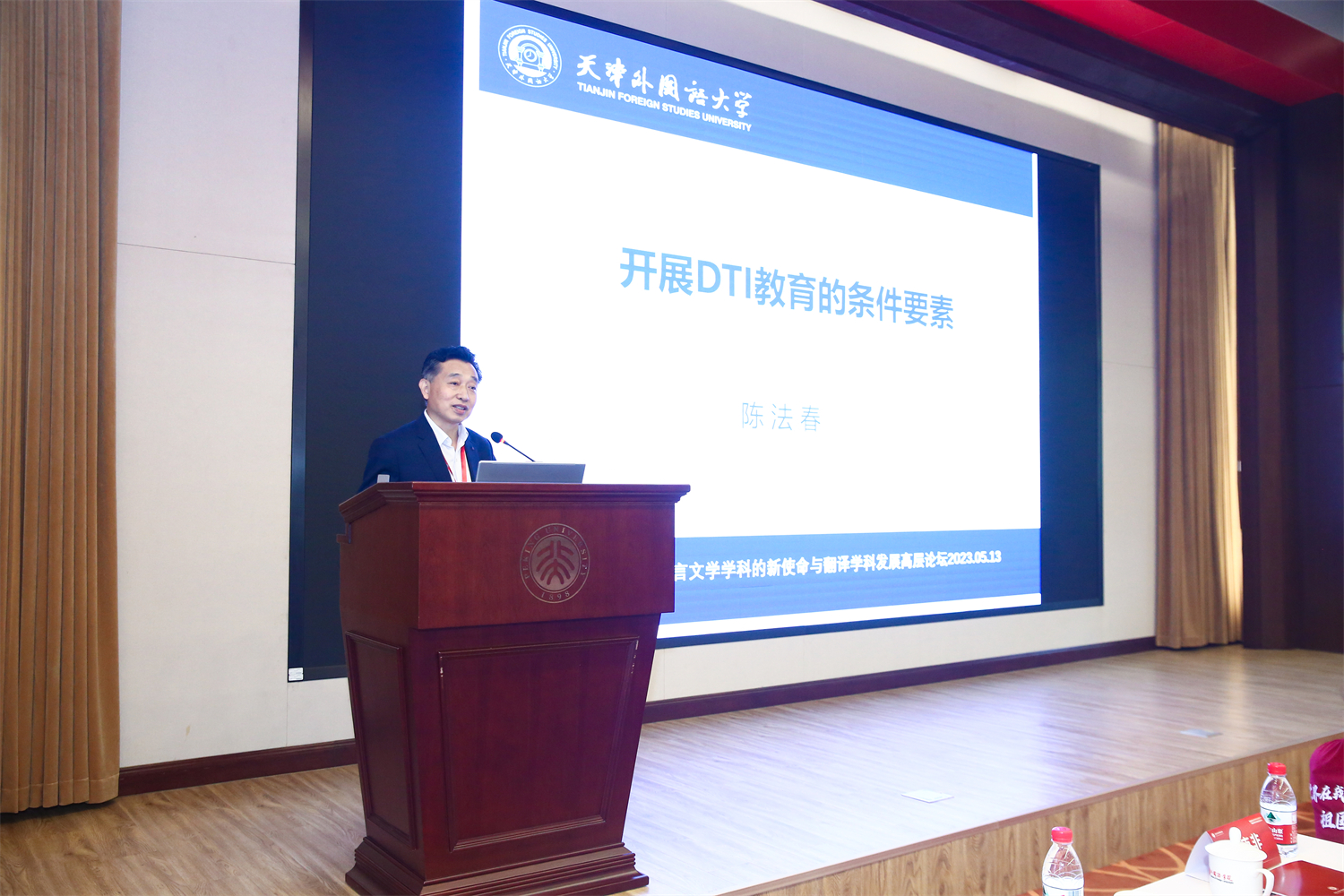 陈法春作“开展翻译博士专业学位(DTI)教育的条件要素”报告。他指出,2022年颁布的《研究生教育学科专业目录(2022年)》将翻译列入文学学科门类专业学位类别,是我国翻译专业教育和学科发展的一件大事。关于开展翻译专业博士学位教育的必要条件,陈法春提出“六度”概念:一是职业需求热度与供给饱和度、二是培养模式的实践体现度、三是产教融合度、四是导师队伍保障度、五是“产教融合联合培养基地”支撑度、六是MTI美誉度。他以“各美其美,美人之美,美美与共,和而不同” 作结,为全国外国语言文学一级学科送上祝福。