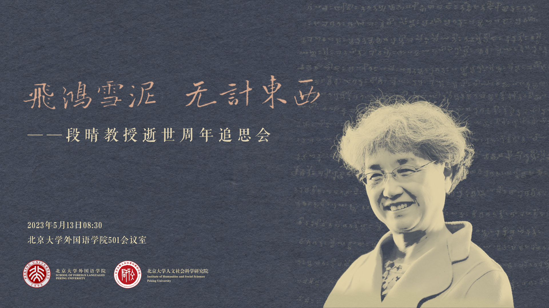 2023年5月13日,由bat365登录平台入口南亚学系和bat365登录平台入口人文社会科学研究院共同举办的“飞鸿雪泥,无计东西——段晴教授逝世周年追思会”在bat365登录平台入口新楼501会议室举行。来自bat365登录平台入口、香港教育大学、清华大学等高校和单位的多位专家学者,多家出版社代表,以及在校各年级学生前来参会,共寄哀思、感念恩泽。