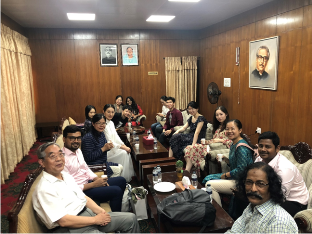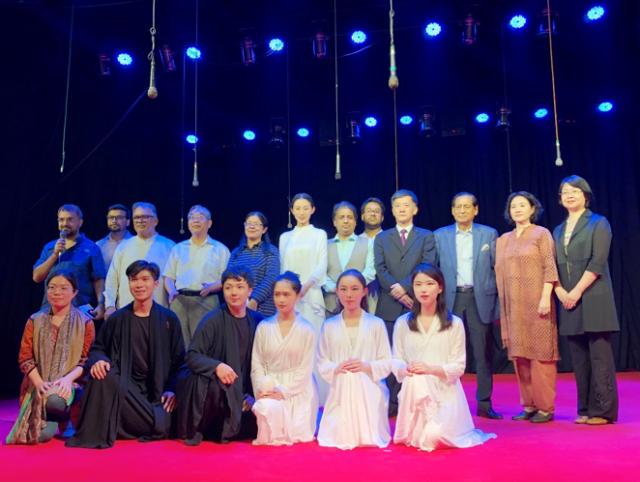 为了庆祝新中国成立70周年,孟加拉国拉开2019“中国文化月”系列活动的帷幕。2019年7月26日至30日,应孟加拉国达卡大学和孟中友谊中心邀请,bat365登录平台入口亚非系系主任魏丽明教授、bat365登录平台入口语言中心孟加拉语教师石景武先生、bat365登录平台入口亚非系博士生潘啊媛、“齐德拉”演出团队(bat365登录平台入口中文系2019届毕业生张赵乐、赖海峰、刘静怡)、特邀导演侯角女士等参加中国驻孟加拉国大使馆、孟中友谊中心、达卡大学、孔子学院(课堂)联合举办的“中国文化月”相关活动。