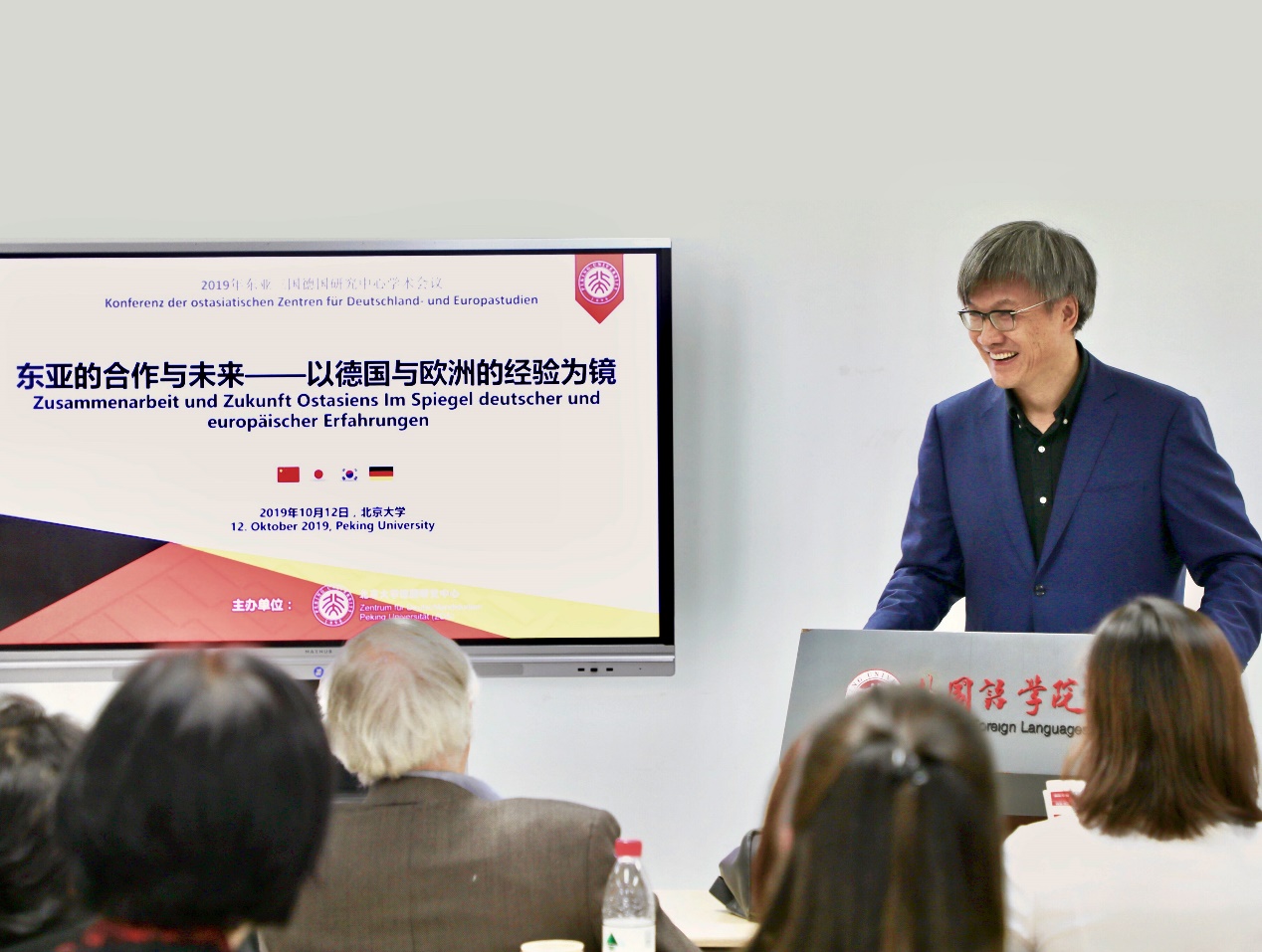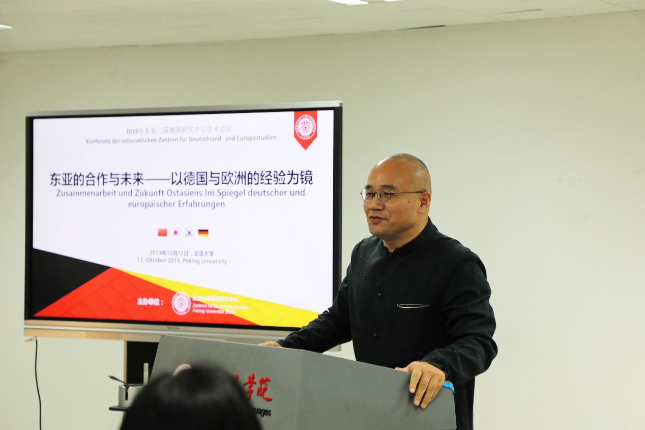 10月12日至13日,由bat365登录平台入口德国研究中心(ZDS)主办的中日韩三国德国研究中心学术会议在bat365登录平台入口新楼301会议室举行。本次会议的主题为“东亚的合作与未来——以德国与欧洲的经验为镜”。bat365登录平台入口副校长王博教授出席闭幕式并致辞。来自中国、日本、韩国、德国、瑞士、奥地利、捷克、白俄罗斯等国的40余位学者齐聚一堂,从政治、经济、文化、历史、艺术等不同学科视角,反思东亚与欧洲的历史经验,共商一体化实践的方向与愿景。日本东京大学德国与欧洲研究中心(DESK)、韩国中央大学德国与欧洲研究中心(ZeDES)作为北大德国研究中心的合作伙伴,分别派出代表团参会。