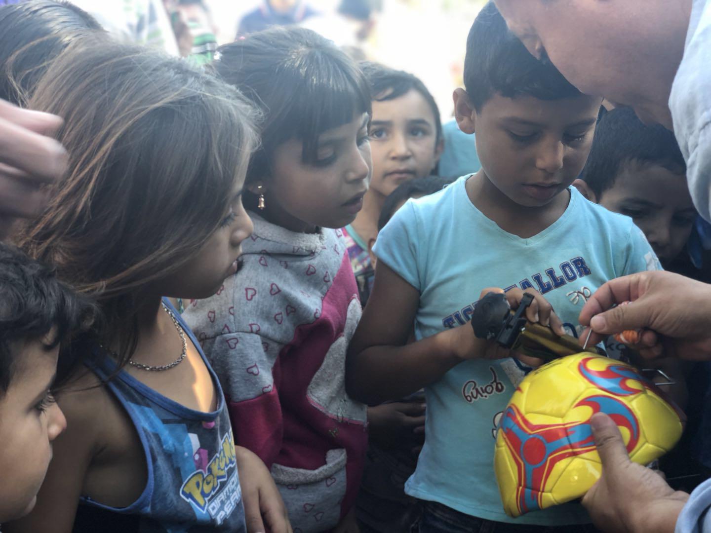 “走进中东”暑期调研活动中付志明赠送足球给难民营儿童