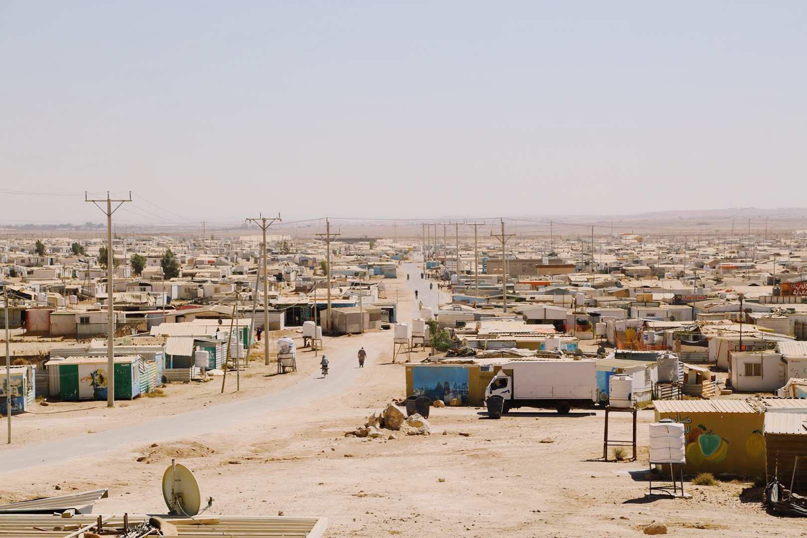 “走进中东”调研活动中,吴冰冰老师与难民营儿童交谈了解生活状况