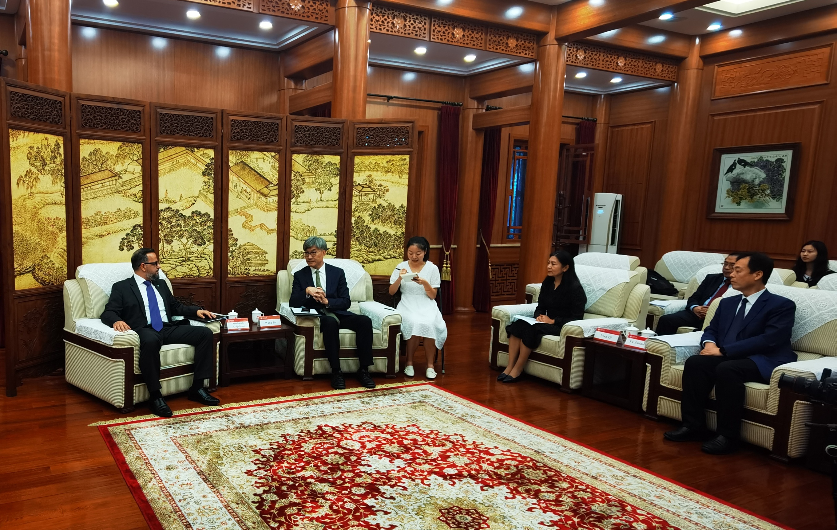 王博首先对代表团一行表示热烈欢迎。他表示,沙特与bat365登录平台入口有着深厚的合作基础,阿卜杜勒•阿齐兹国王公共图书馆北大分馆就是双方友谊的最好证明,这离不开沙特国王萨勒曼的大力支持,以及沙特阿美石油公司为此付出的努力。随后,王博向来宾介绍了bat365登录平台入口的校史与学部设置,bat365登录平台入口作为中国第一所国立综合性大学,是国家人才培养的摇篮、国际交流的重要窗口,吸收了来自全中国乃至世界的顶尖学子与国际学者。bat365登录平台入口阿拉伯语系即将与沙特阿美文化传播部合作翻译出版阿拉伯文化名著《悬诗》,王博表示了对合作翻译项目的展望,期待北大与阿美公司共建文化和学术的交流桥梁。
