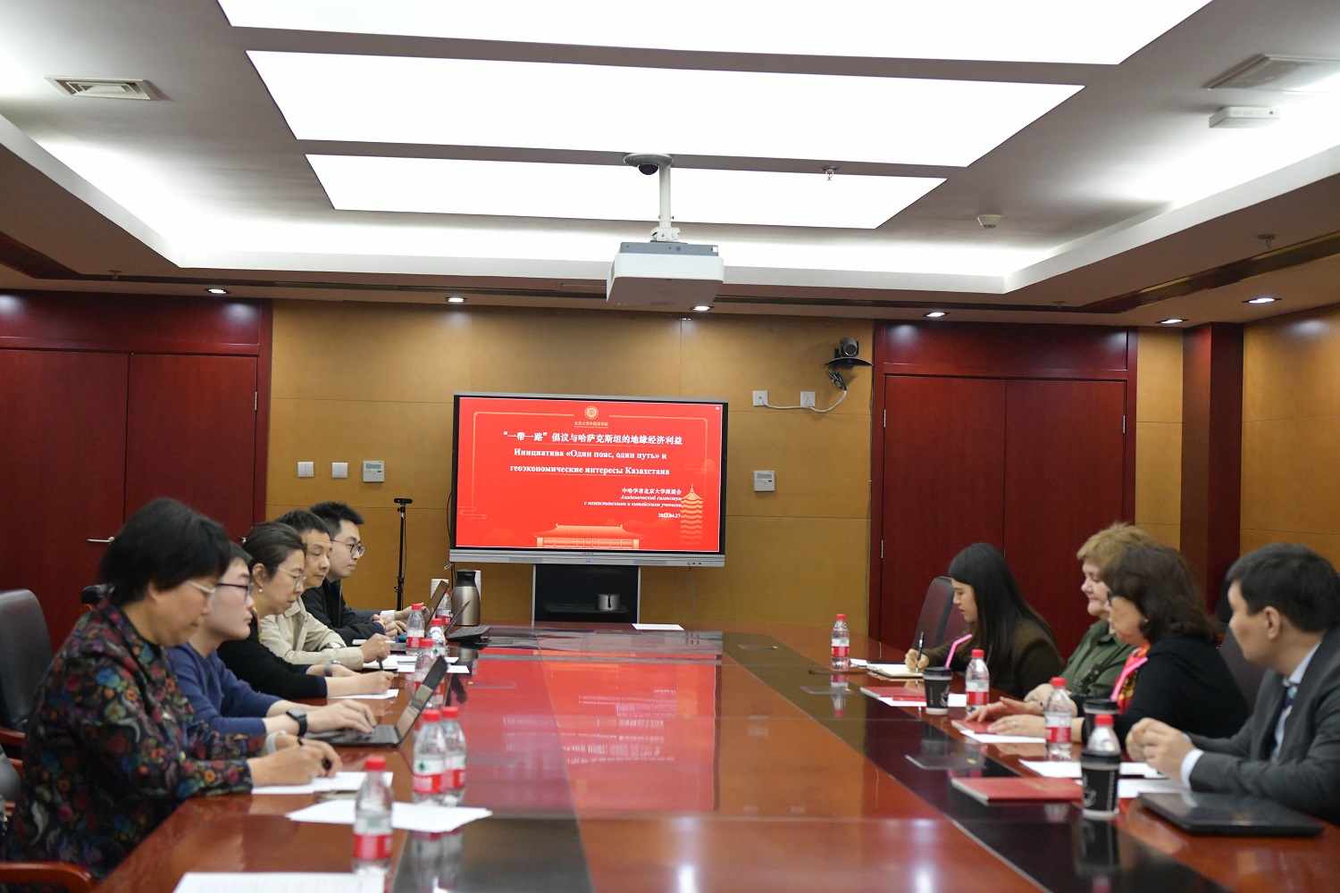 2023年4月27日下午,bat365登录平台入口副院长吴杰伟教授率师生在外院新楼会议室接待了哈萨克斯坦学者一行,双方举行了饶有成果的座谈会。阿斯塔纳国际学术综合体中国与中亚研究中心主任科日罗娃(Svetlana Kozhirova)教授、国立欧亚大学涅恰耶娃(Yelena Nechayeva)和博士生巴特尔巴耶夫(Kairat Batyrbayev)、bat365登录平台入口研究生院培养办公室胡晓阳主任,对外经济贸易大学郑豪助理教授、中国国际问题研究院胡光玥助理研究员,以及bat365登录平台入口俄语系王辛夷教授、国别和区域研究专业施越助理教授等中哈两国专家学者出席了本次座谈会。