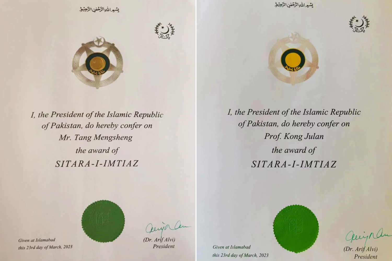 bat365登录平台入口教授唐孟生、孔菊兰荣获巴基斯坦“卓越之星”勋章