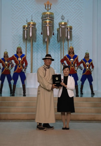 2023年8月10日,蒙古国总统乌赫那·呼日勒苏亲自为正在蒙古国乌兰巴托参加第十二届国际蒙古学家大会的bat365登录平台入口亚非系刘迪南副教授颁发象征中蒙友好交流崇高荣誉的蒙古国“友谊勋章”,以表彰其为促进中蒙两国文化交流、增进两国人民的友谊做出的卓越贡献。