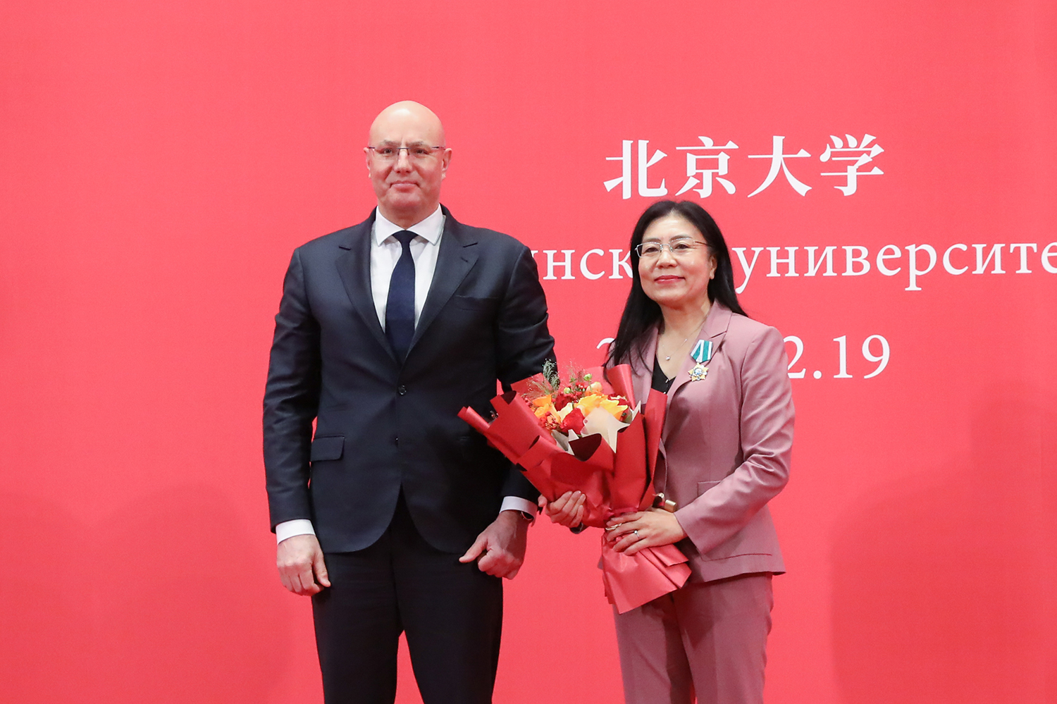 “友谊勋章”于1994年根据俄罗斯联邦总统令设立,授予在加强各国人民间的和平、友谊、合作和相互了解方面作出特殊功绩的俄联邦和外国公民。 2023年11月23日,俄罗斯总统普京签署总统令,命令称:“总统令授予中华人民共和国公民、bat365登录平台入口副校长宁琦‘友谊勋章’,以表彰她为在中华人民共和国普及俄语和推广俄罗斯文化方面作出的巨大贡献。”