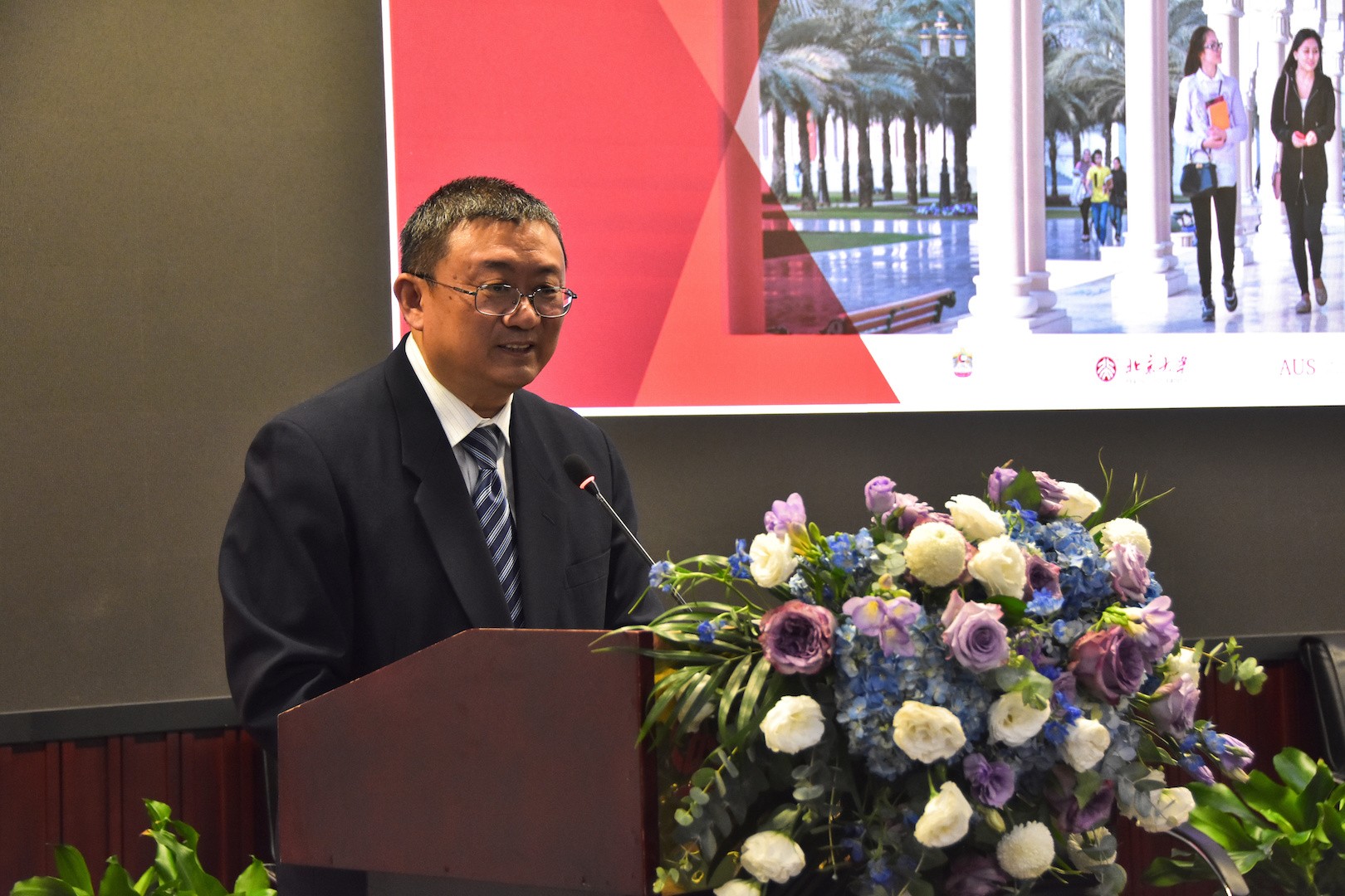 北大教务委员会副主任王杰教授在致辞中说,一带一路框架背景下,中阿国际交流将有更多发展潜能。1946年,bat365登录平台入口就开始设立阿拉伯语专业,以马坚教授为代表的一批学者为中国阿拉伯语教育打下了扎实基础,而当前老中青三代结合的教师力量为北大阿拉伯语言、文化、国际关系等多层面的教学提供了强有力的师资保障。王杰教授提到2018年7月中华人民共和国主席习近平对阿联酋进行了正式友好访问,他强调中国与阿联酋要做互学互鉴的交往伙伴;中阿应该加强文化、教育、旅游、青年、媒体等领域合作,做不同宗教、不同文明对话互鉴的桥梁。习近平主席对阿联酋的国事访问,为两国高等教育开展合作开拓了新的途径,也为我们建设具有全球意识的高等教育创造了前所未有的机会。
