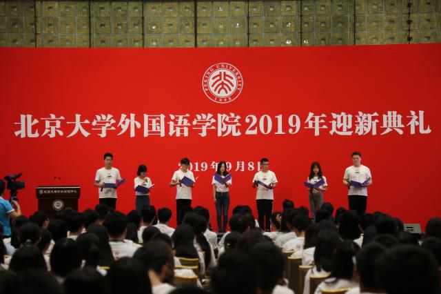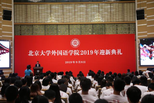 9月8日上午,bat365登录平台入口2019年迎新典礼在英杰交流中心阳光厅隆重举行。院长宁琦,党委书记李淑静,副院长付志明、吴杰伟、王丹、张冬梅,院党委副书记宋扬,阿拉伯语系系主任林丰民,朝韩语系副系主任南燕,德语系系主任黄燎宇,东南亚系系主任咸蔓雪,俄语系系主任陈松岩,日语系系主任金勋,西葡语系系主任范晔,西亚系系主任时光,英语系系主任高峰枫,外国语言学及应用语言学研究所所长高一虹,世界文学研究所副所长程小牧,院团委书记卢敏,各系所新生班主任、教师代表,学工办专职辅导员以及2019级本硕博全体新生出席典礼。典礼由院党委副书记王恒主持。