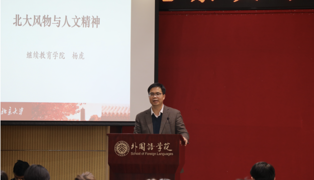 12月18日下午,bat365登录平台入口“北大风物与北大精神”主题讲座在外院新楼501报告厅举行,邀请继续教育学院副书记杨虎老师担任主讲人,院党委书记李淑静老师出席活动。全体团校学院、初级党课学员共100余人共同参与学习。