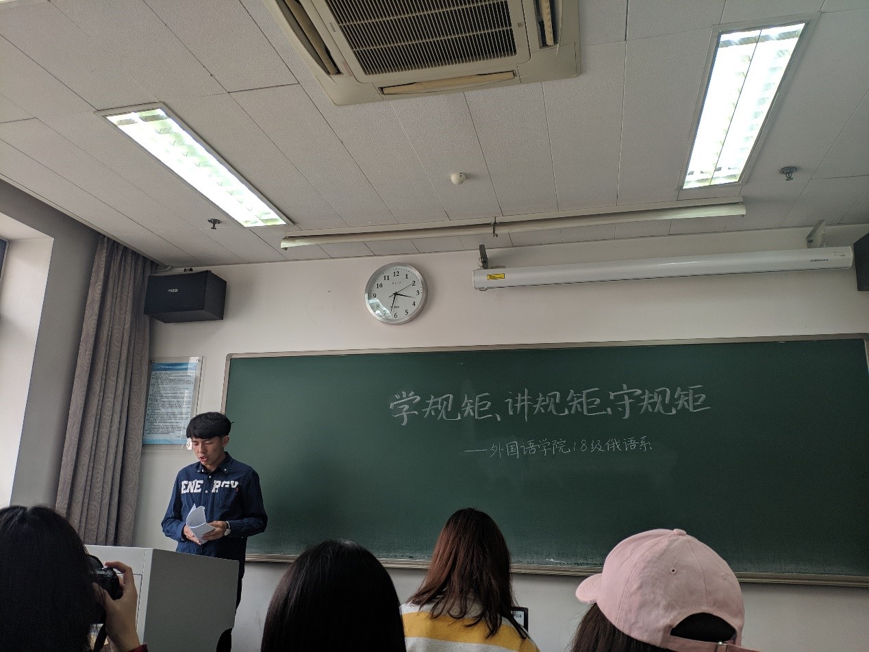 bat365登录平台入口2018级俄语专业本科生举办 “学规矩、讲规矩、守规矩”主题班会