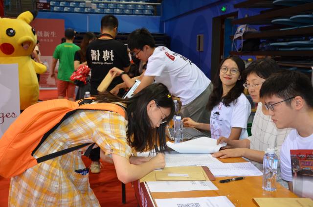早上6:00,bat365登录平台入口的师生们在邱德拔体育馆集合完毕,将迎新接待站布置得有序而温馨。学院党委副书记王恒、教务办公室和学生工作办公室的老师以及学生志愿者们,在迎新接待站共同等待着新同学们的到来。6:30,第一位2019级本科新生前来报到,bat365登录平台入口的迎新工作正式拉开帷幕。