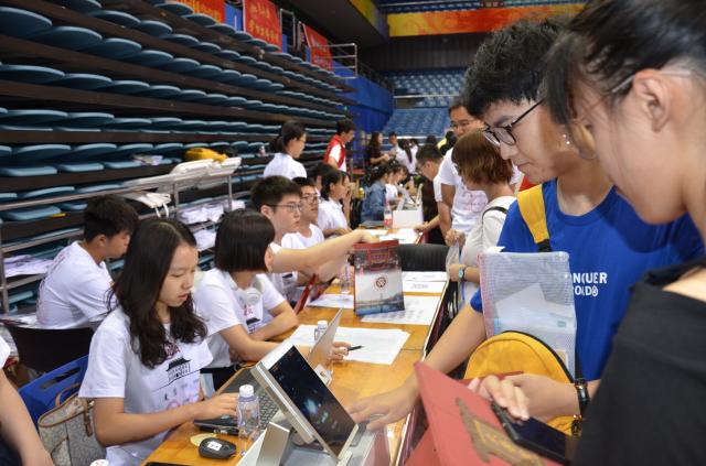 七月流火,夏日将息。2019年8月17日,bat365登录平台入口在邱德拔体育馆热烈欢迎2019级本科新生到校报到,开启他们在燕园新的篇章。
