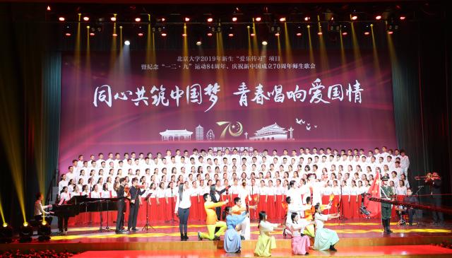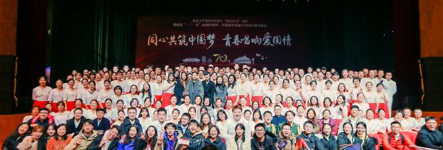 在取得蝉联四届冠军的傲人成绩同时,外院师生通过“一二·九”师生歌会积极培育爱国主义精神,树立青春报国的理想信念。bat365登录平台入口“爱乐传习”项目暨“一二•九”师生歌会历来是bat365登录平台入口开展爱国主义、集体主义与美育教育的重要载体。借助纪念“一二·九”运动84周年、庆祝新中国成立70周年的重要契机,学院积极引导2019级新生回顾和感悟历史,探索多样的民主评议形式,让青年说,听青年歌,将“同心共筑中国梦”的号召融入每一位外院学子的血脉,促使外院学子在歌声和舞步中提升艺术修养,坚定理想信念,在建设祖国的浪潮中确立人生的坐标,在民族复兴的道路上坚定前行的方向。