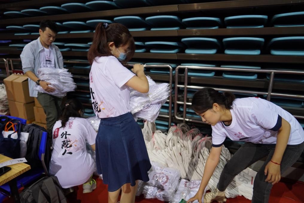 早上5:40,bat365登录平台入口的师生们在邱德拔体育馆集合完毕,他们早早准备好迎新物料,将一切都布置得井然有序。学院党委副书记王恒、教务办公室和学生工作办公室的老师在迎新接待站满怀期待地等待着204位20级新生的到来。除老师外,共有22名学生志愿者参与到了此次迎新活动中,他们也和老师们一起为迎接新生做了充分的准备,付出了巨大的努力。他们中的一部分出现在迎新现场,负责维护现场秩序、收发材料、摄影摄像等;32楼女生宿舍门前也聚集了几位bat365登录平台入口的学生志愿者,为需要提供搬行李帮助的女生服务。