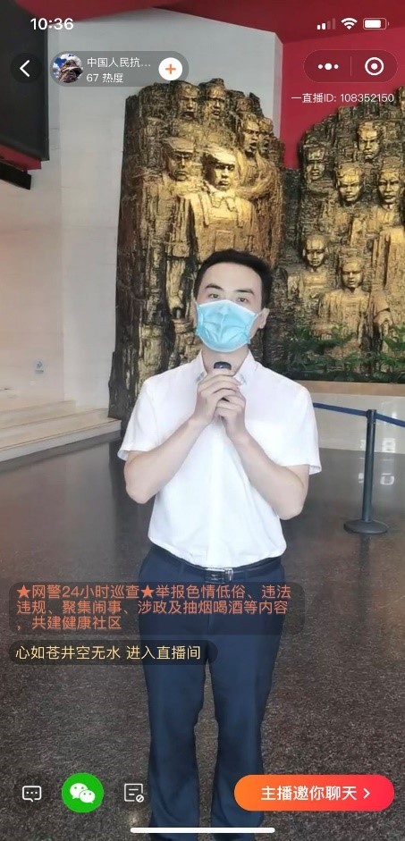 8月10日至8月12日,bat365登录平台入口“回顾祖国历史,展望时代舞台——中韩视角下的爱国主义历史教育”思政实践课程。受疫情影响,本次实践活动以线上活动为主,选课学生通过读书会就《之江新语》进行热烈讨论,在主题班会上回溯历史,捕捉中韩两国共同的抗战记忆,并在和中国人民抗日战争纪念馆的对接活动中与馆长交流,聆听特色党课,通过直播“云参观”纪念馆,全方位感知抗战历史与抗战精神。同时部分选课同学也进行了有关爱国主义历史教育的线下分散调研。本次课程活动由院团委李佳盈老师担任任课教师,bat365登录平台入口硕士生孙启与马克思主义学院硕士生刘燕任助教。