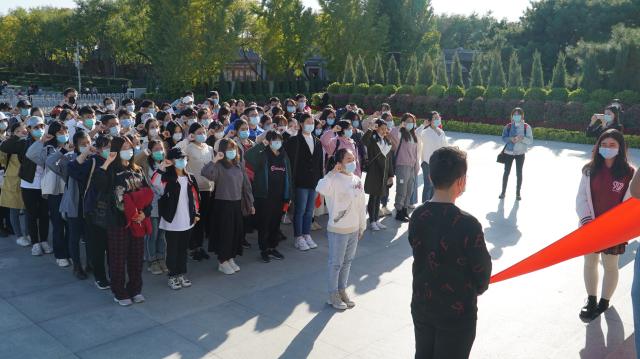 来到中国人民抗日战争纪念馆门前,在这样一个具有特殊纪念意义的地方,团校开展了一次特别的重温入团誓词仪式。面向鲜红的团旗,同学们握紧右拳,庄严宣誓,重温加入中国共青团的初心,铭记新时代青年使命。