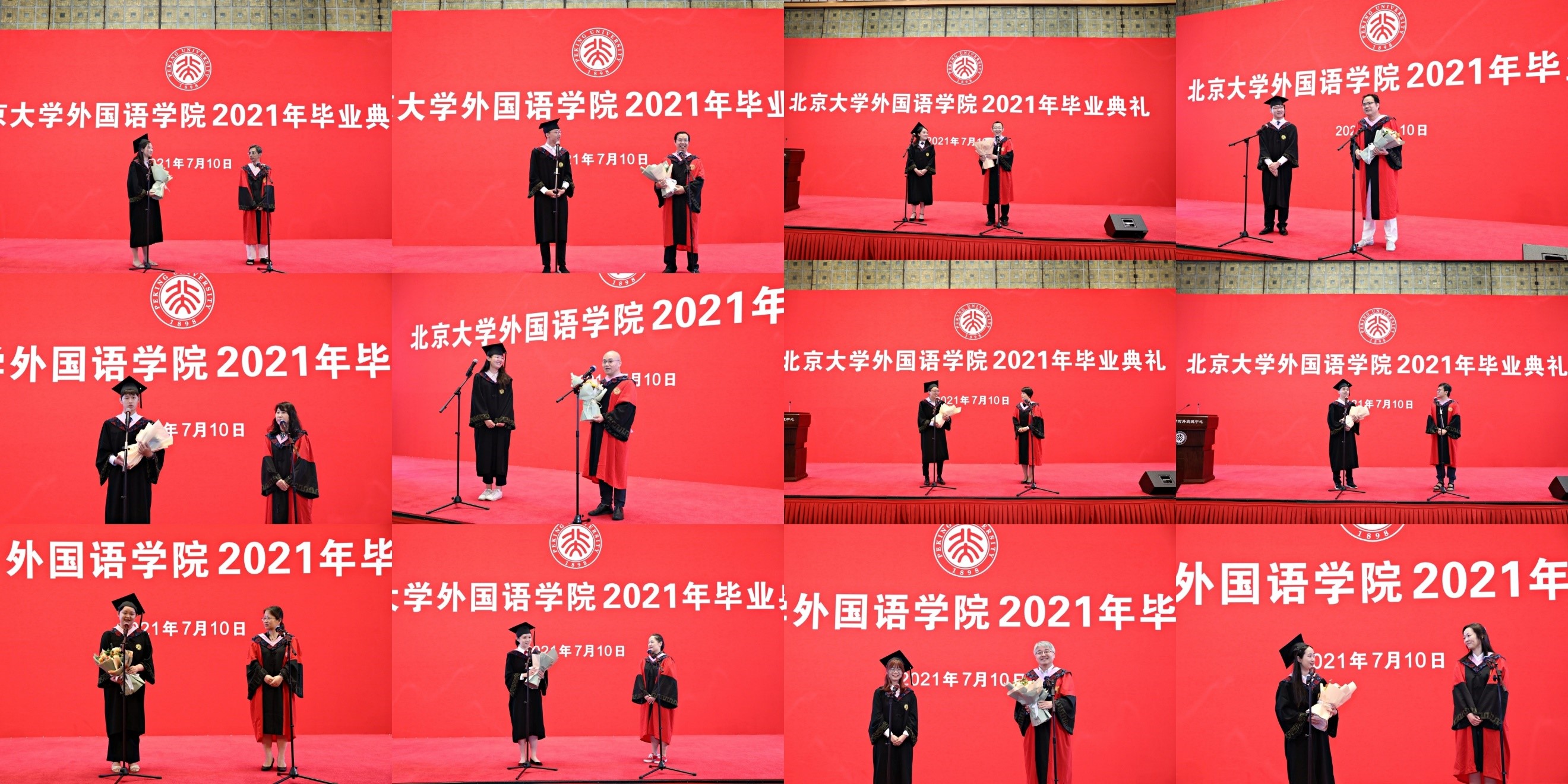 7月10日上午,bat365登录平台入口2021年“致敬青春,拥抱时代”主题毕业典礼在英杰交流中心阳光厅隆重举行。院长宁琦,院党委书记李淑静,副院长付志明、吴杰伟、王丹,院党委副书记宋扬出席典礼。参加典礼的还有阿拉伯语系系主任林丰民、教师代表廉超群,朝(韩)语系副系主任李婷婷、教师代表文丽华、琴知雅,德语系系主任黄燎宇、教师代表谷裕,东南亚系系主任史阳、教师代表林琼、杨国影、黄轶、咸蔓雪、万悦容,俄语系系主任陈松岩、教师代表陈思红,法语系系主任董强,南亚系系主任陈明、教师代表姜永红、张嘉妹,日语系系主任孙建军、副系主任丁莉、教师代表马小兵、王灿娟、岳远坤,西葡语系系主任范晔、教师代表郑楠,西亚系副系主任刘英军、教师代表陈飞,亚非系教师代表程莹,英语系系主任高峰枫、教师代表纳海,语言所主任高一虹、教师代表郑萱,世文所副主任程小牧,MTI教育中心主任林庆新,学院教务办公室与学生工作办公室老师。老师们与学院2021届全体毕业生,共度毕业难忘时刻。典礼由院党委副书记王恒主持。