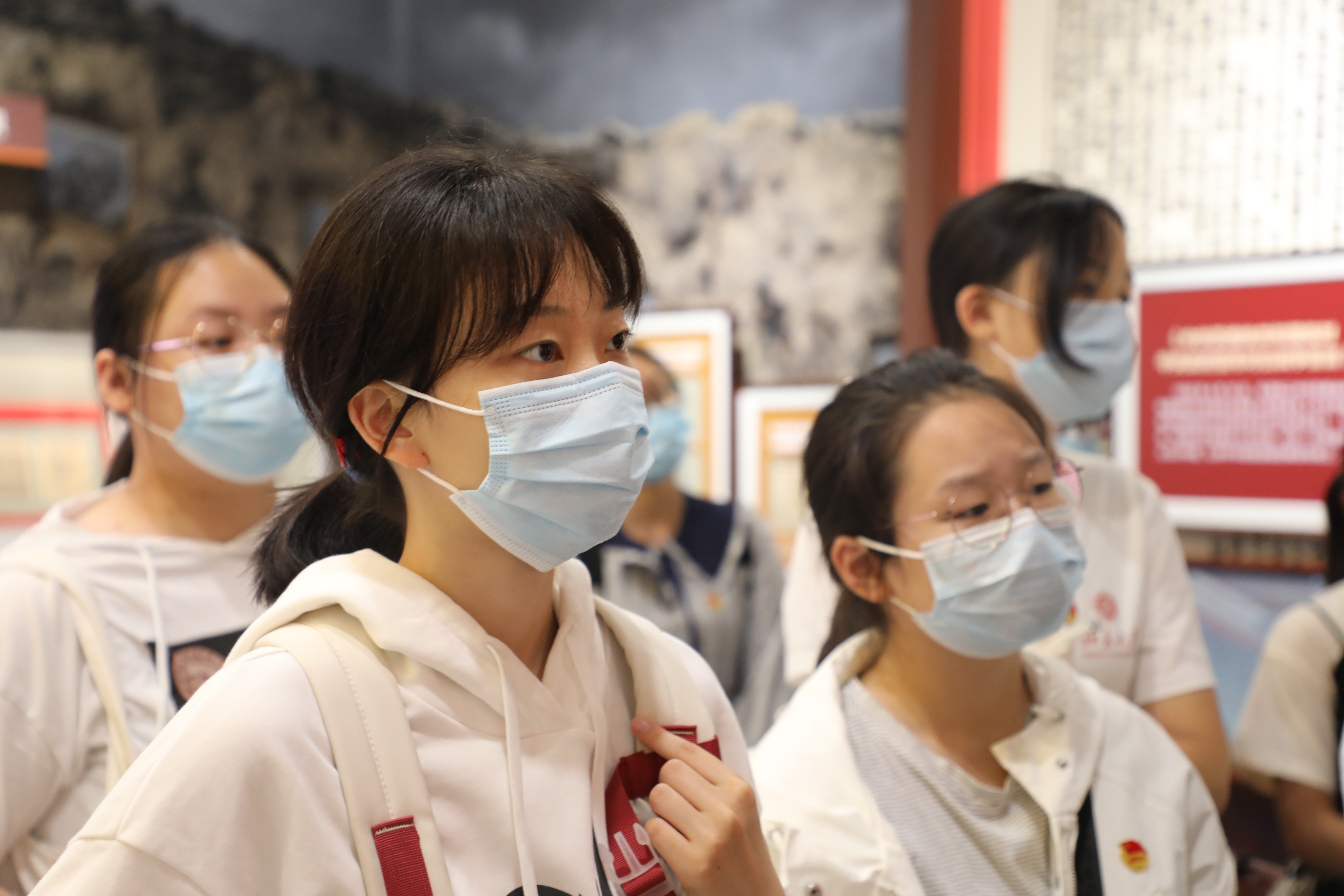 同一时间,辅导员杨轶佳老师和21级新生骨干在讲解员的引导下参观了“伟大胜利,历史贡献”基本陈列和“中流砥柱——中国共产党抗战文物展”。面对一张张还原真相的照片与一件件重现历史的文物,师生们肃然起敬、驻足瞻仰,内心波澜澎湃,倍受伟大抗日精神与国家危难关头共产党人舍小家、为大家的献身精神之感召,树立起更加坚定的理想信念。