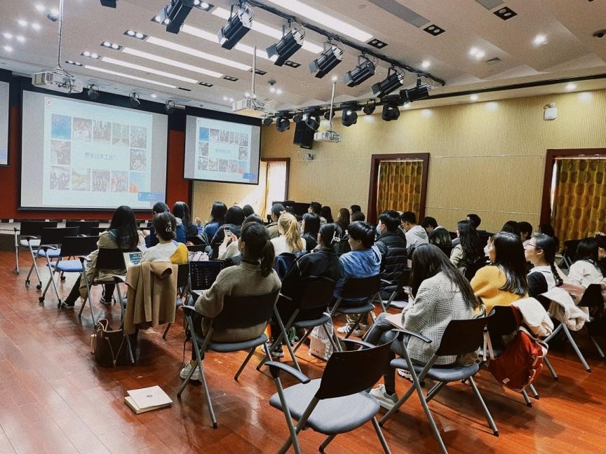 2021年10月22日下午,为进一步拓宽学生求职视野,加强学生就业指导,日语系邀请2016级翻译硕士毕业生蔡琳凌回校分享赴日工作经验。日语系2020级和2021级翻译硕士参加了本次交流会。