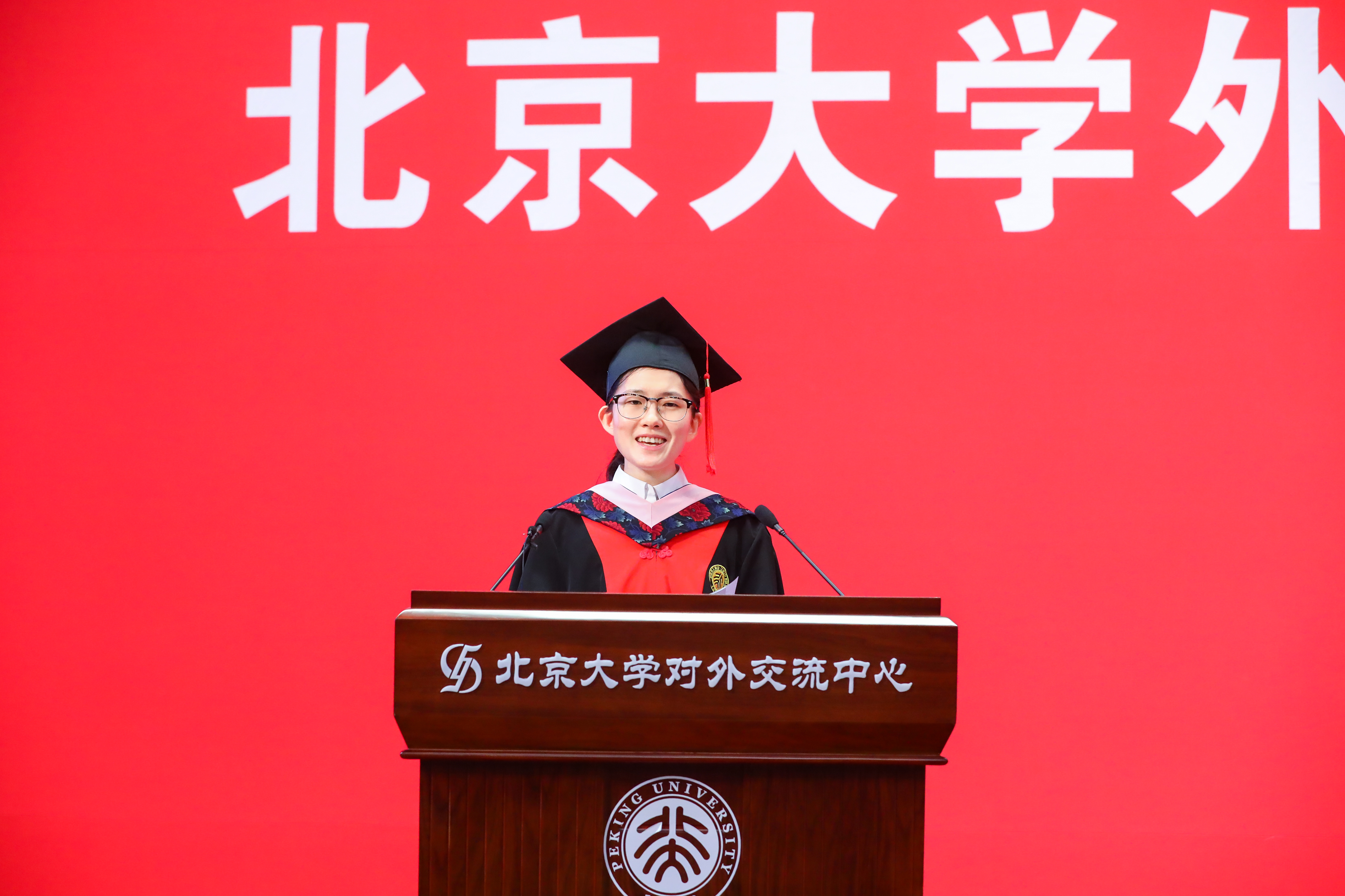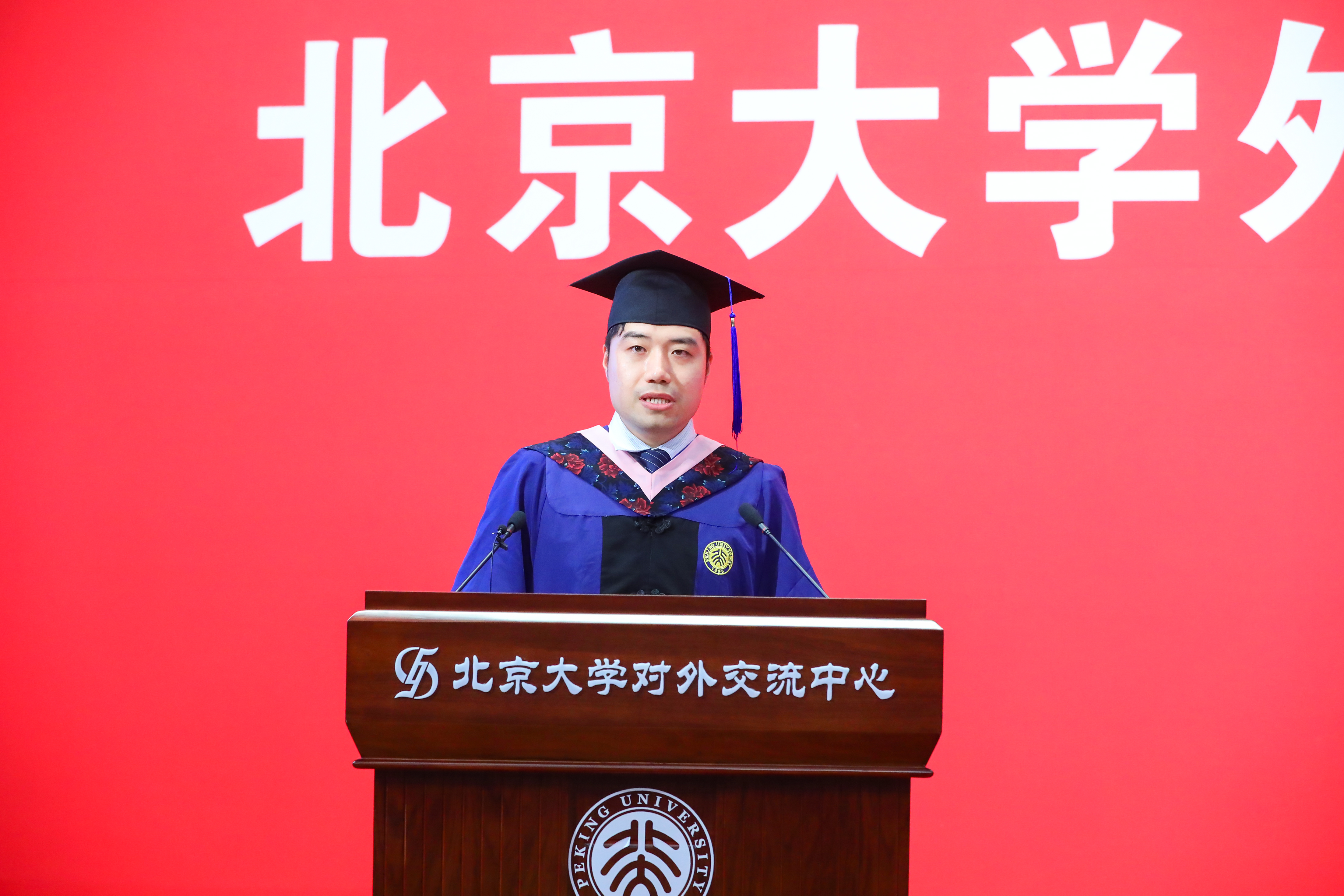 2019级西亚系硕士毕业生曲翔前作为硕士毕业生代表发言。他回顾了七年外院生活的点点滴滴:可爱的“外院人”给予他温暖与感动,多年的外语学习教会他包容和理解,“世界在我脚下,祖国在我心中”的外院精神激励他不断前行。即将奔赴基层工作的他表示,将永远秉持外院人心怀家国的使命传承,努力向下扎根,在乡村振兴的大潮中贡献自己的力量。
