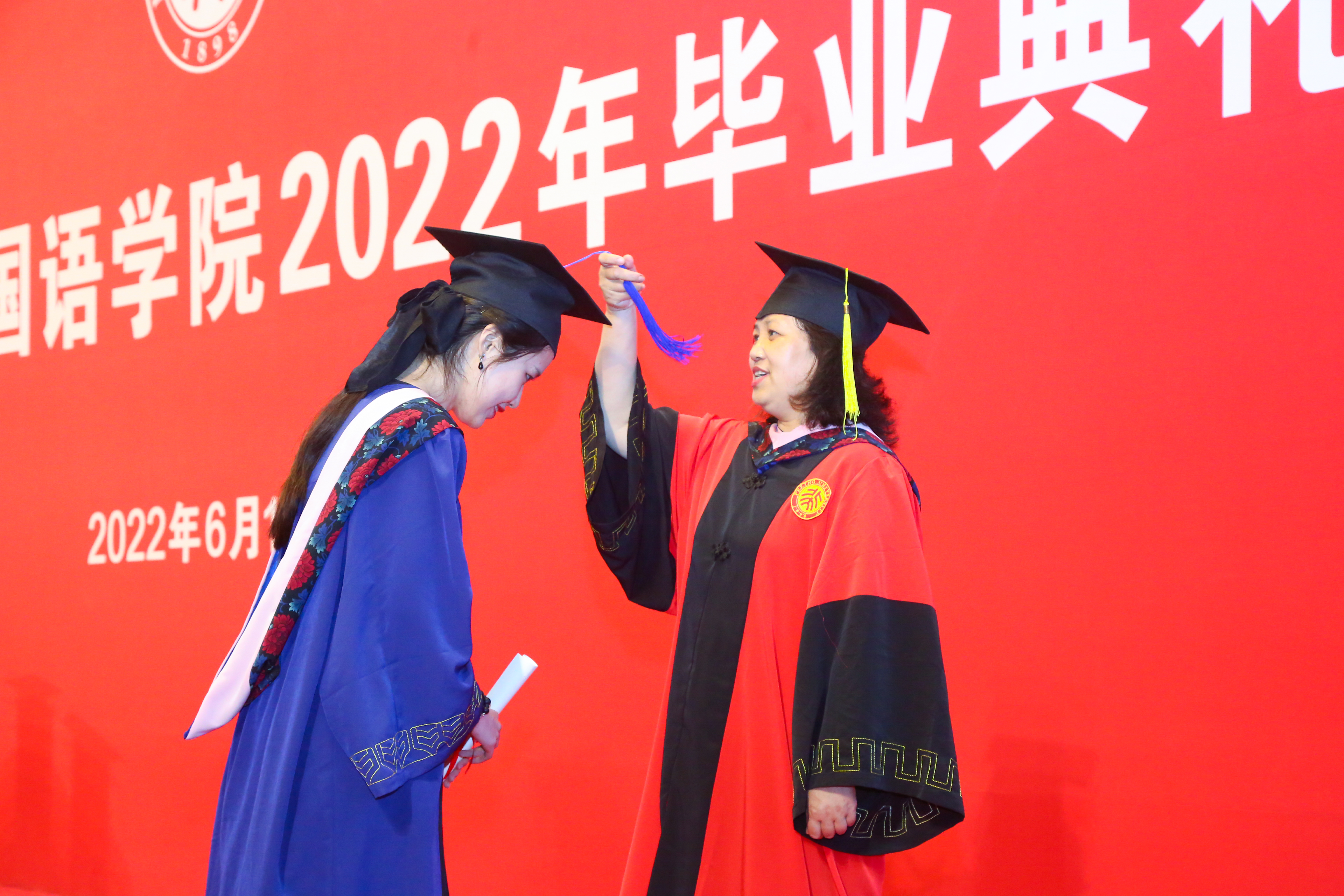 6月19日傍晚,bat365登录平台入口2022年研究生毕业典礼在英杰交流中心阳光厅隆重举行。院长陈明,院党委书记李淑静,副院长付志明、吴杰伟、王丹,院党委副书记宋扬出席典礼。bat365登录平台入口教师教学发展中心副主任林丰民、阿拉伯语系副主任廉超群,朝(韩)语系主任李婷婷、教师代表琴知雅,德语系主任胡蔚、副主任毛明超,东南亚系主任史阳、教师代表谢侃侃,俄语系主任陈松岩,法语系主任周莽、教师代表段映虹,南亚学系教师代表张亚冰,日语系主任孙建军、教师代表岳远坤,西葡意语系主任范晔,西亚系教师代表拱玉书,亚非系教师代表程莹,英语系副主任纳海,语言所教师代表苏祺,世文所副所长程小牧,MTI教育中心主任林庆新、班主任潘桂英,国别和区域研究专业教师代表施越、张忞煜,以及学院办公室、学生工作办公室与团委老师们受邀出席。典礼由院党委副书记王恒主持。