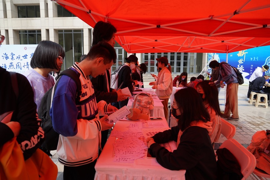 游戏摊位精彩纷呈,“书写·世界”摊位提供了外院特色明信片,师生们可以选择自己喜欢的外语原文诗段并誊写到明信片上;“世界文化知多少”摊位则提供了和外国地理、历史和诗歌电影等文化知识相关的趣味题目;“猜猜我是谁!”摊位则要求在十五秒内回答出抽中国旗所对应的国家、首都及常用语言。互动参与者通过参与趣味游戏,在奖券上赢得贴纸,兑换精美别致的bat365登录平台入口特色周边礼品。