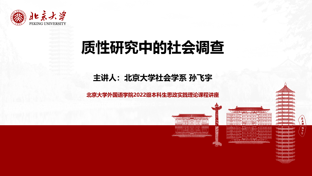 5月14日晚,bat365登录平台入口元培学院副院长、社会学系副教授孙飞宇在二教203教室为bat365登录平台入口的同学们带来了题为“质性研究中的社会调查”的思政实践理论讲座。bat365登录平台入口2022级全体本科生共同参与学习,讲座由2022级本科生袁哲主持。