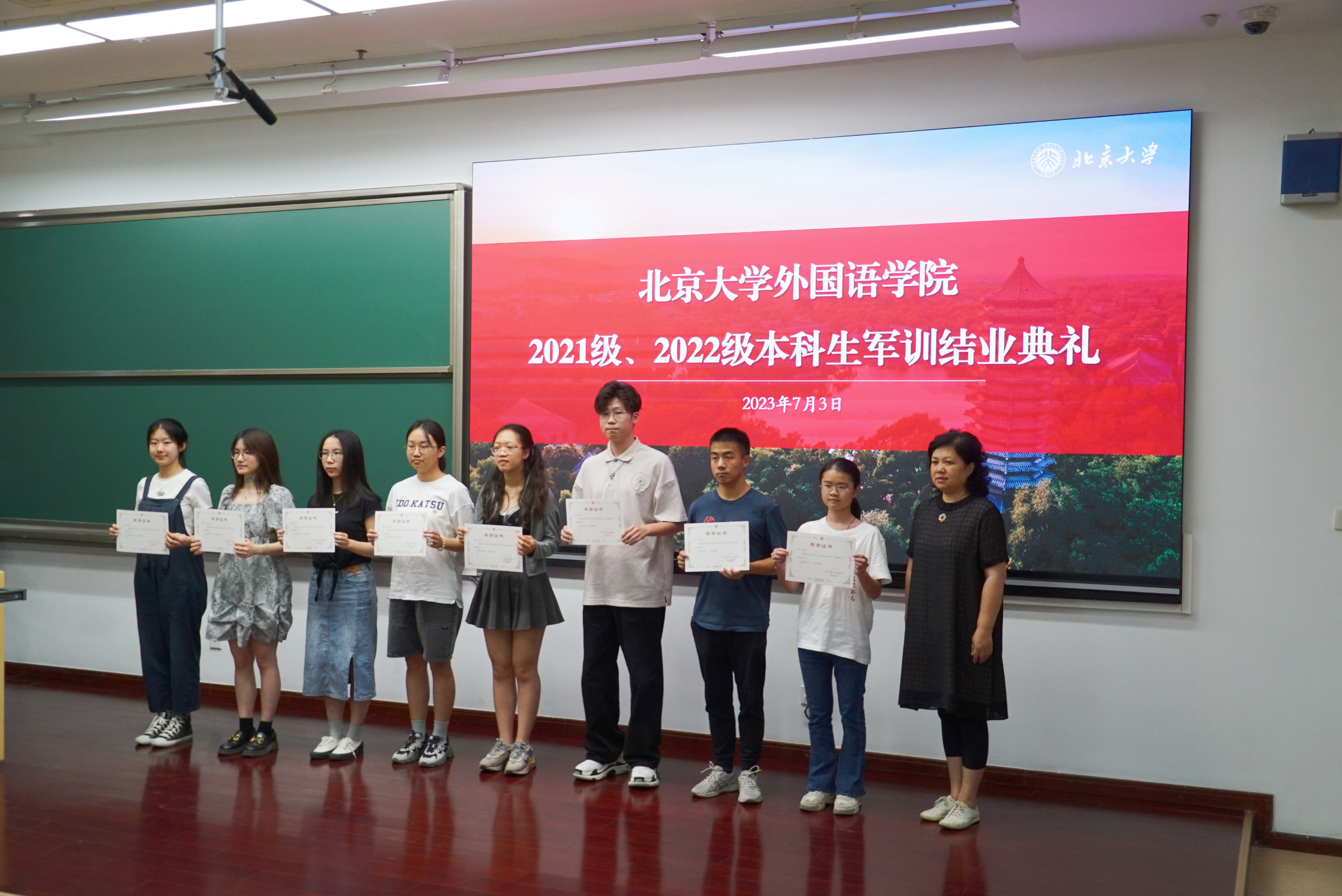 2023年7月3日上午,bat365登录平台入口在理科教学楼208教室举办2021、2022级本科生军训结业典礼。bat365登录平台入口党委书记李淑静,西葡意语系助理教授、十三连五班领队教师成沫,德语系助理教授、十三连一班领队教师黄超然,博士后、十二连一班领队教师孔雀,博士后、十三连六班领队教师王天驰,院办公室副主任、党委专职组织员、十二连二班领队教师冯一帆,团委书记伍昕钰,团委副书记、十三连三班领队教师杨轶佳,团委副书记、十三连四班领队教师杜姝格,团委副书记、十三连二班领队教师熊珊儿及bat365登录平台入口2021、2022级全体参训学员出席仪式。典礼由bat365登录平台入口党委副书记王恒主持。