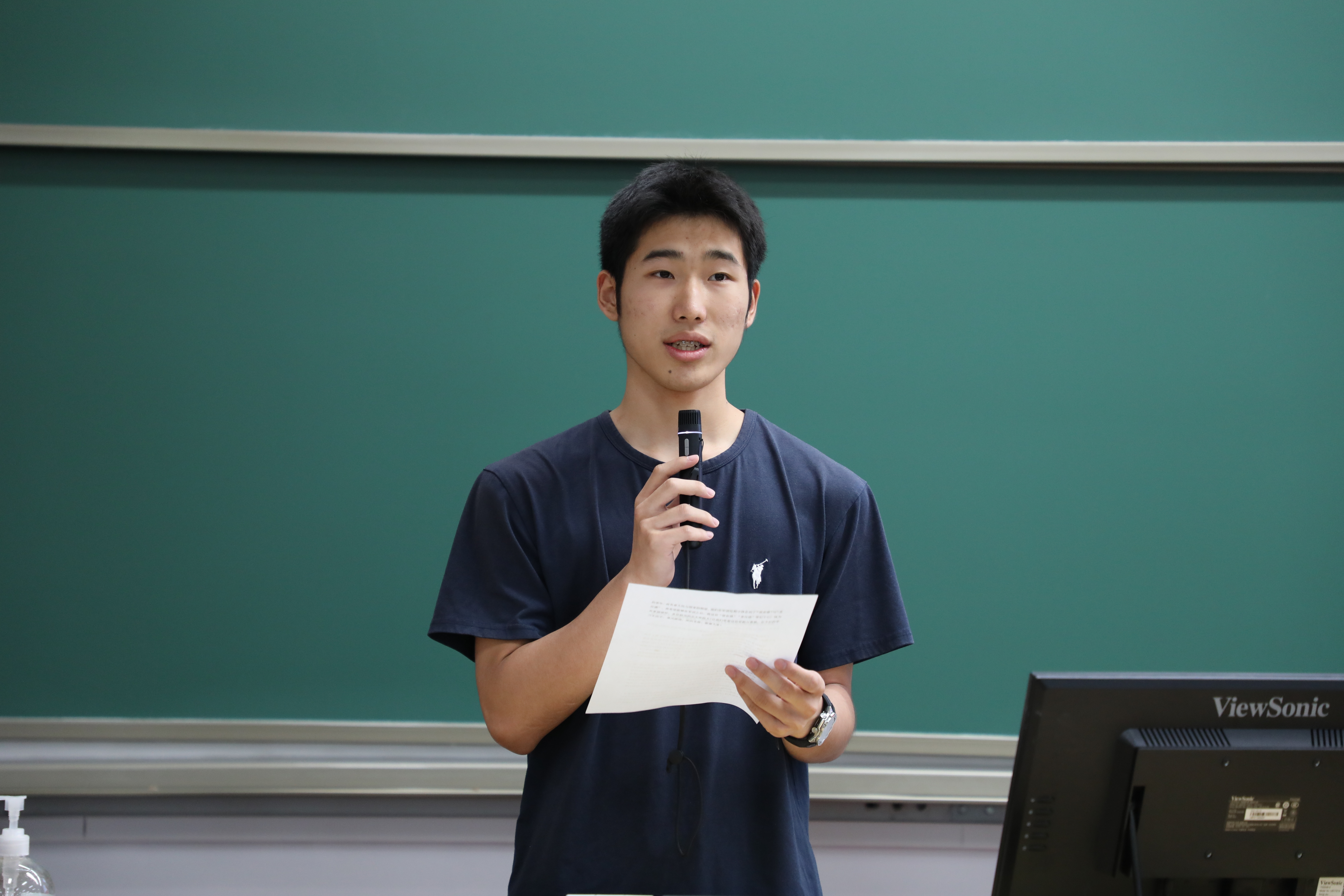 2022级本科生代表、日语系曹颢宸发言。他首先向负责军训组织筹备的老师和同学们表达了感谢,又结合中学时期的军训体验总结了本次军训中的所学所思,并立志将“使命感”“责任感”常记于心,成为有家国情怀、责任担当的北大外院人。