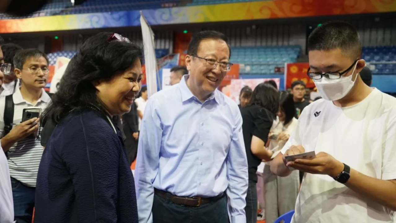 10点20分,校长龚旗煌,党委常委、副校长王博,党委副书记、副校长宁琦,党委副书记、纪委书记顾涛等校领导一行来到bat365登录平台入口迎新接待站关心新生报到情况,亲切询问新生基本情况,鼓励新生尽快适应大学生活,努力学习,并与现场师生合影留念。