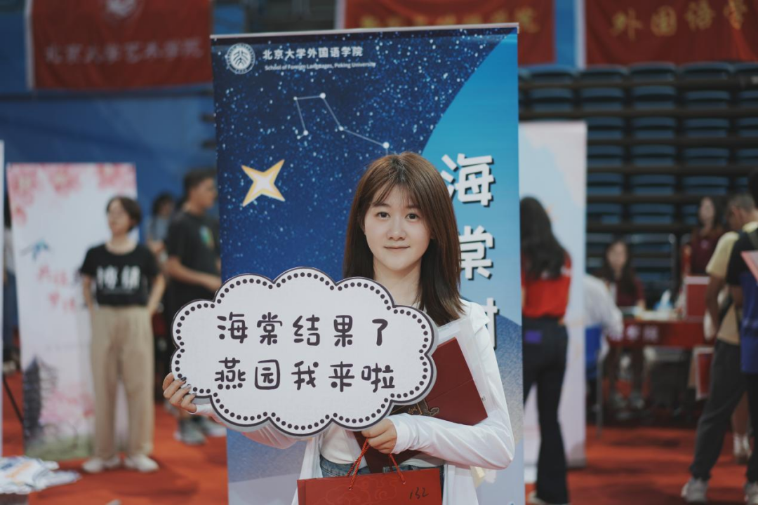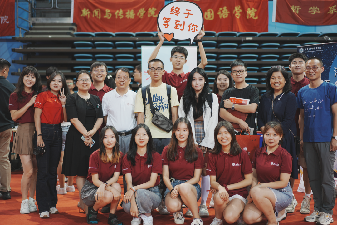 新生们举起姓名牌和外院标语留影时,每一位同学的脸上都绽放着发自内心的笑容。