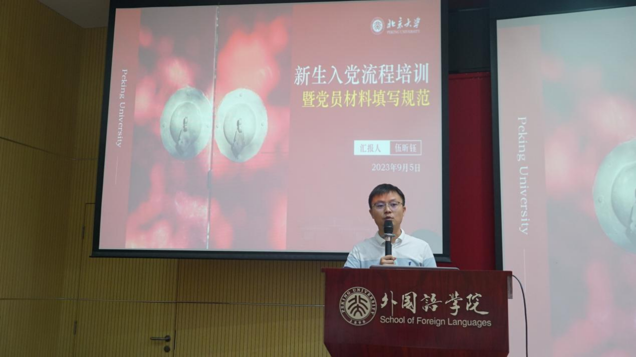 伍昕钰为新生们讲解入党流程,并鼓励同学们积极提交入党申请书。