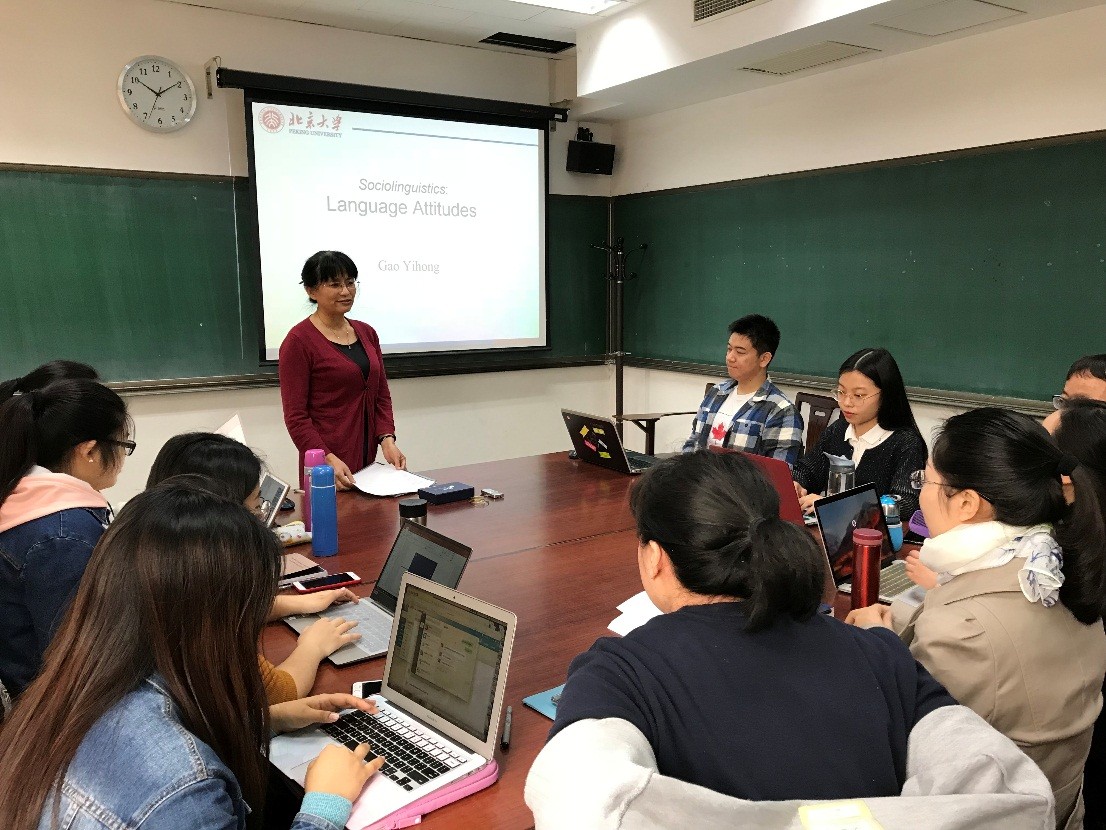 3月29日上午,bat365登录平台入口教授、博士生导师,外国语言学及应用语言学研究所所长高一虹在文史楼215举办开放课堂。高一虹在bat365登录平台入口第二十二届“我爱我师——最受学生爱戴的老师暨‘十佳教师’系列评选活动”中获评“十佳教师”称号,本次课堂开放以“社会语言学”为讲授和探讨主题,吸引了诸多学生和青年教师,亲临现场感受其课堂魅力。