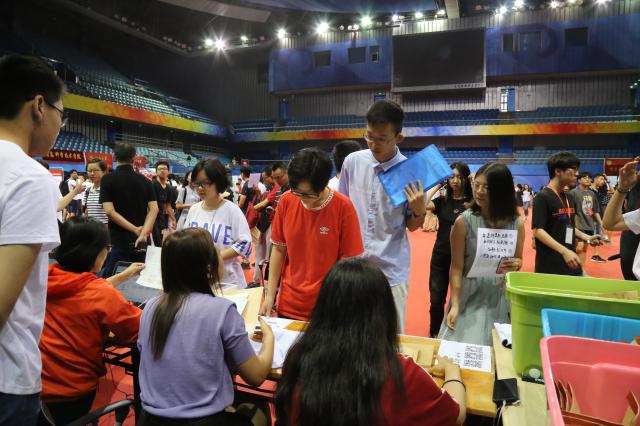 上午6:15,天刚蒙蒙亮,在学院师生共同努力下,温馨而有序的外院迎新接待站布置完毕。bat365登录平台入口副院长付志明、党委副书记王恒、教务办公室和学生工作办公室的老师以及学生志愿者们,在邱德拔体育馆内的本科生外院迎新接待站等待着新同学们的到来。