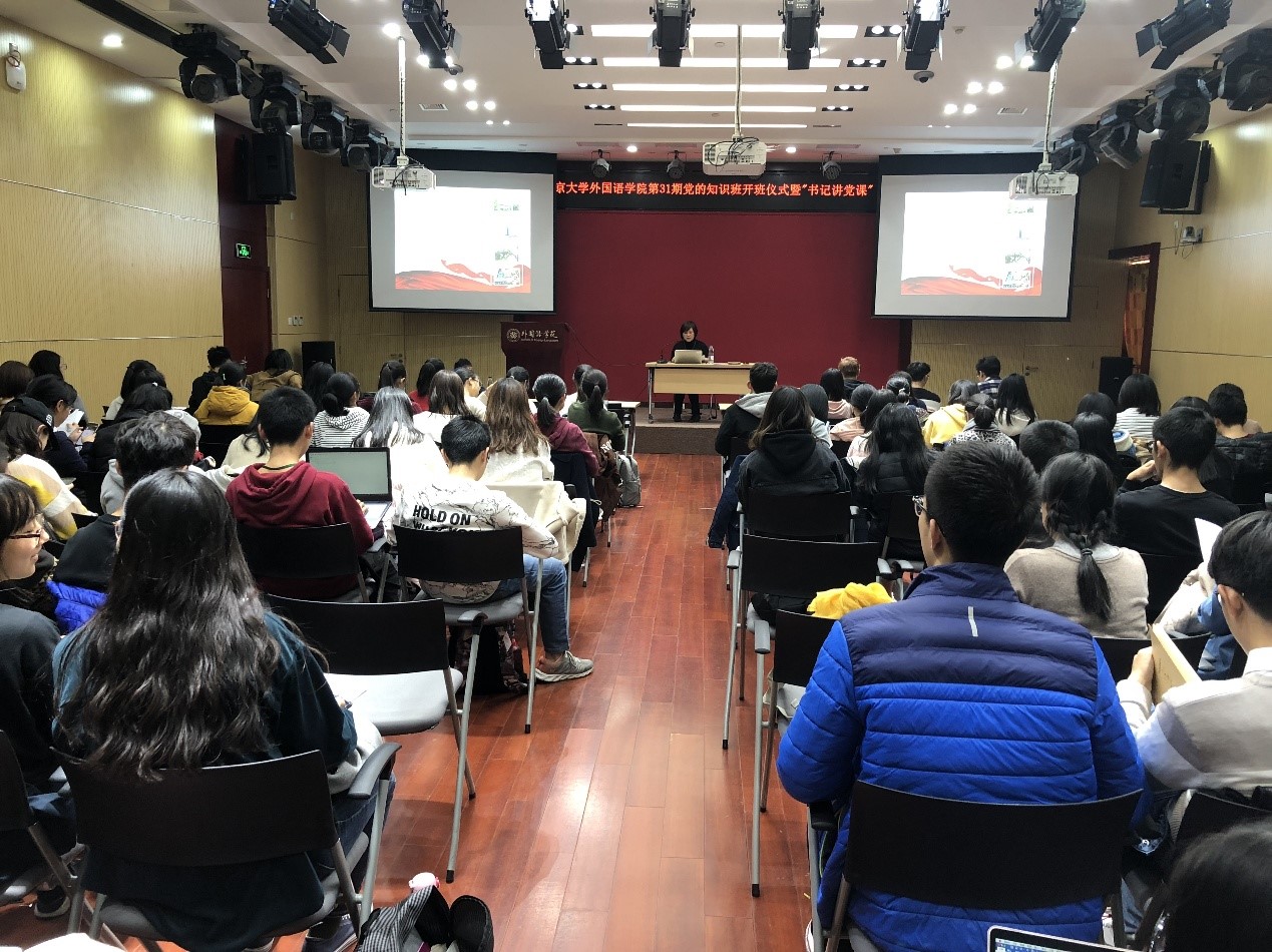 2018年11月9日下午2:00,bat365登录平台入口“书记讲党课”活动暨第31期党的知识培训班开班仪式在外院新楼501报告厅举行。bat365登录平台入口党委书记李淑静为148名党课学员们讲授入党第一课,学院党委副书记王恒、团委书记王艳超出席。活动由bat365登录平台入口专职辅导员李涛主持。