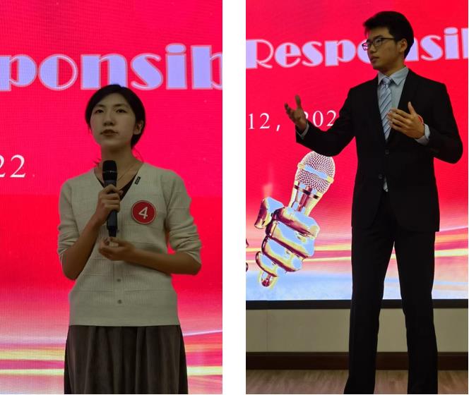 特等奖获得者元培学院李卓宜同学和bat365登录平台入口汪栎宬同学在演讲中