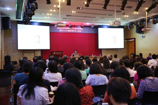 2018年6月15日,bat365登录平台入口教职工大会暨学习贯彻党的十九大精神集体学习活动在bat365登录平台入口新楼501举行。会议由bat365登录平台入口党委书记李淑静老师主持,两百余名学院教职员工参加了此次会议。