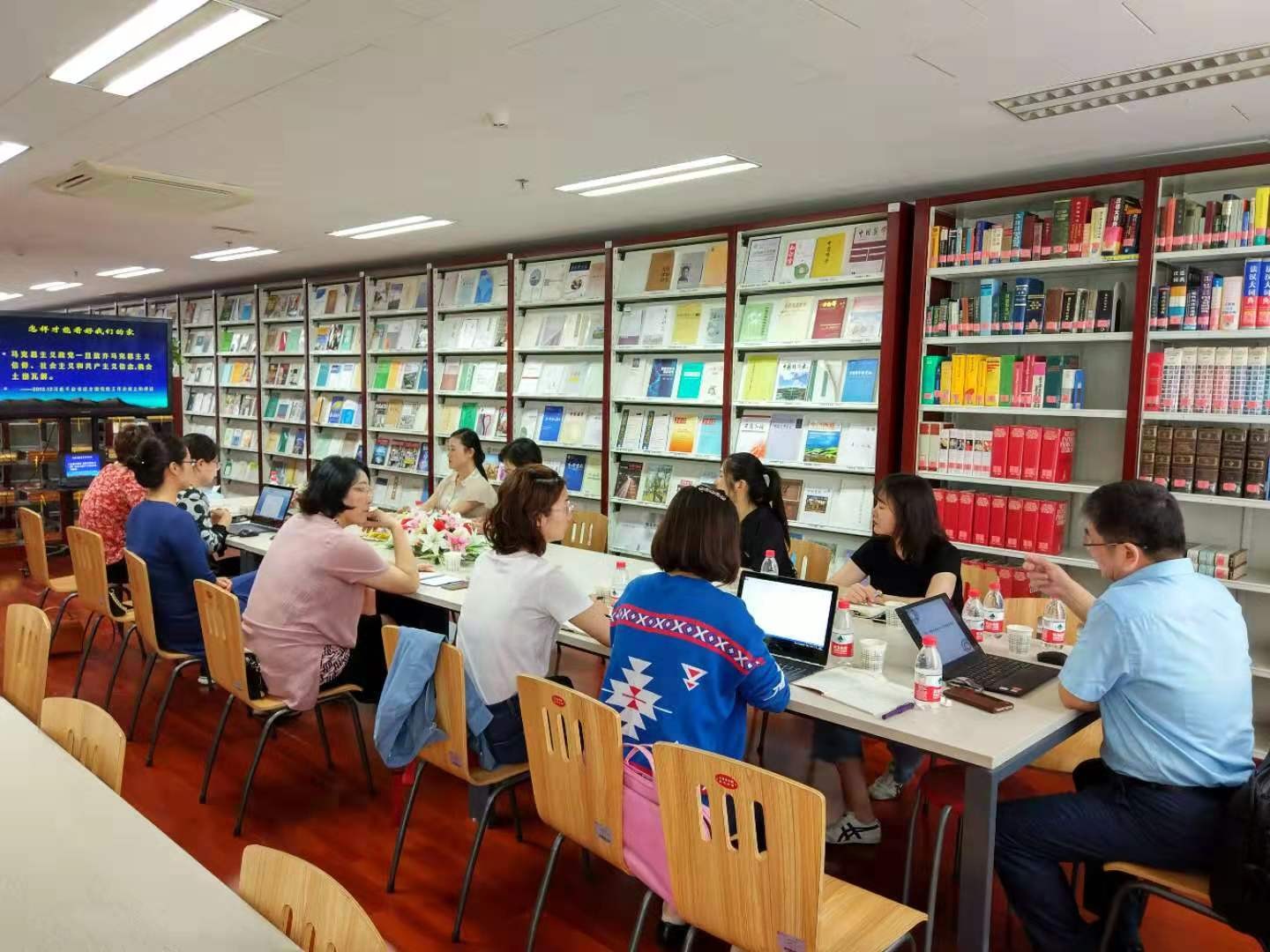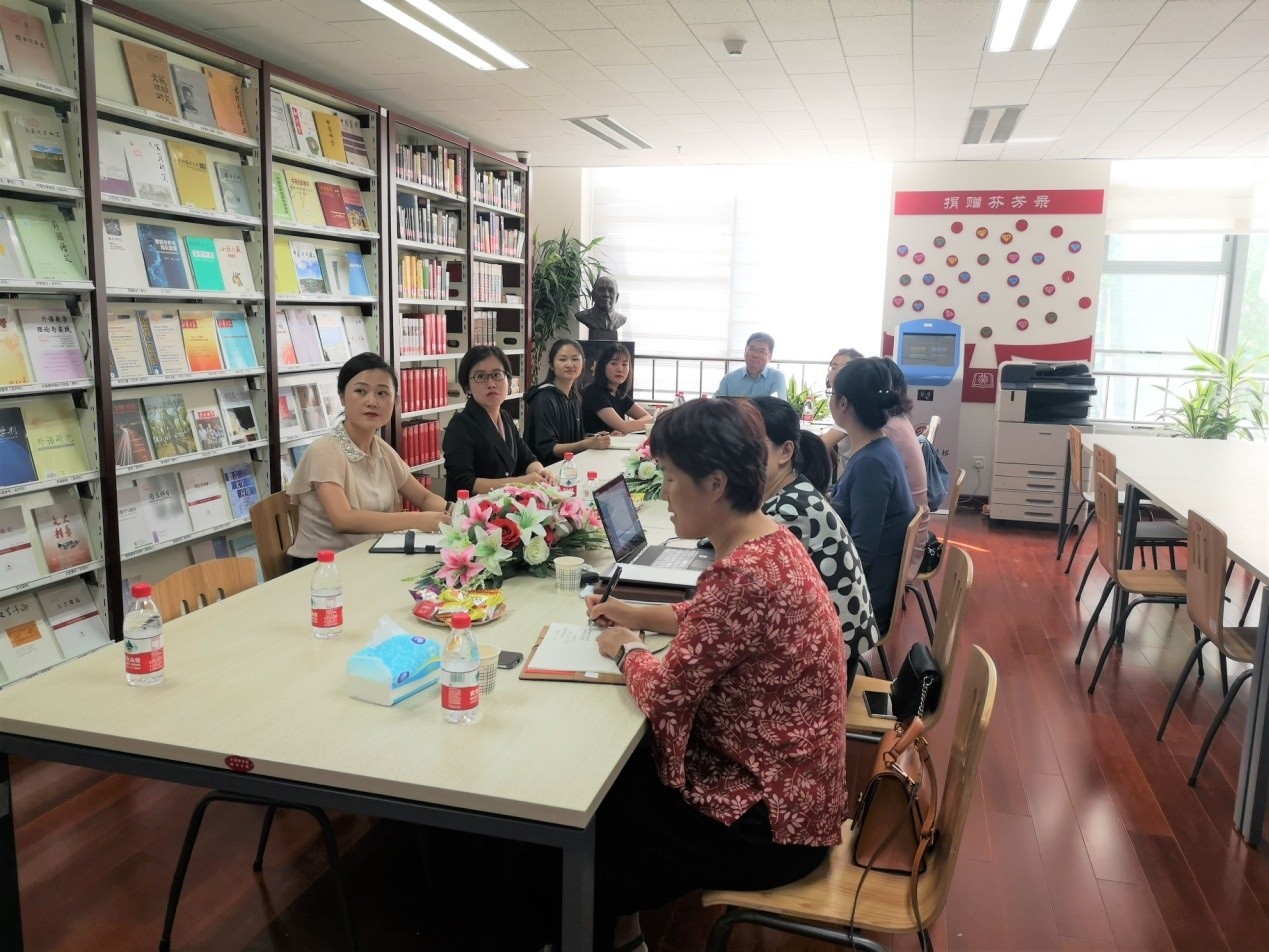 9月20日下午,bat365登录平台入口习近平新时代中国特色社会主义思想研究院(以下简称“习研院”)孙熙国常务副院长、办公室主任黄宇蓝老师等一行7人赴我院进行了“不忘初心、牢记使命”相关主题调研学习交流。交流会在学院新楼图书分馆B102室举行。我院张冬梅副院长、办公室主任倪丽慧、业务办公室副主任张琳娜、图书分馆馆长张晓雁等多位老师参加了此次活动。