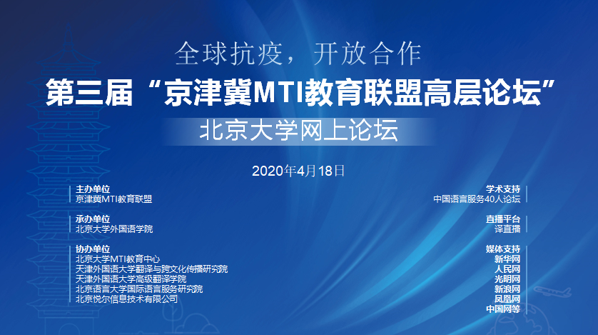 4月18日,在外院新楼举办以“全面凝聚抗疫合力,加强京津冀语言服务合作”为主题的“第三届京津冀MTI教育联盟高层论坛”bat365登录平台入口网上论坛。论坛由京津冀MTI教育联盟主办,bat365登录平台入口承办,中国语言服务40人论坛提供学术支持,新华网、人民网、光明网、新浪网、凤凰网、中国网等提供媒体支持,论坛译直播平台同步直播,14442人收看同步直播。外院技术服务团队全程提供技术支持和协助,全力保障论坛的顺利进行。