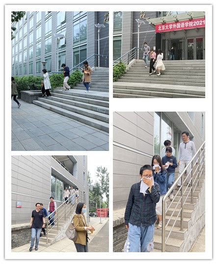 楼内师生员工和物业人员相互配合,按照事先制定的《bat365登录平台入口消防疏散预案》,全体人员在三分钟内顺利完成了疏散逃生,包括当时正在楼内进行科研、教学的老师,小组研讨的同学,正在地下二层图书分馆阅读的师生。大家都用学院提前发放的消防湿毛巾捂住口鼻,伏低身体,根据安全出口指示标识指引,按照远离起火点和就近原则,分别从南侧室内楼梯和北侧室外楼梯迅速有序地离开了大楼,到达指定集合地点。
